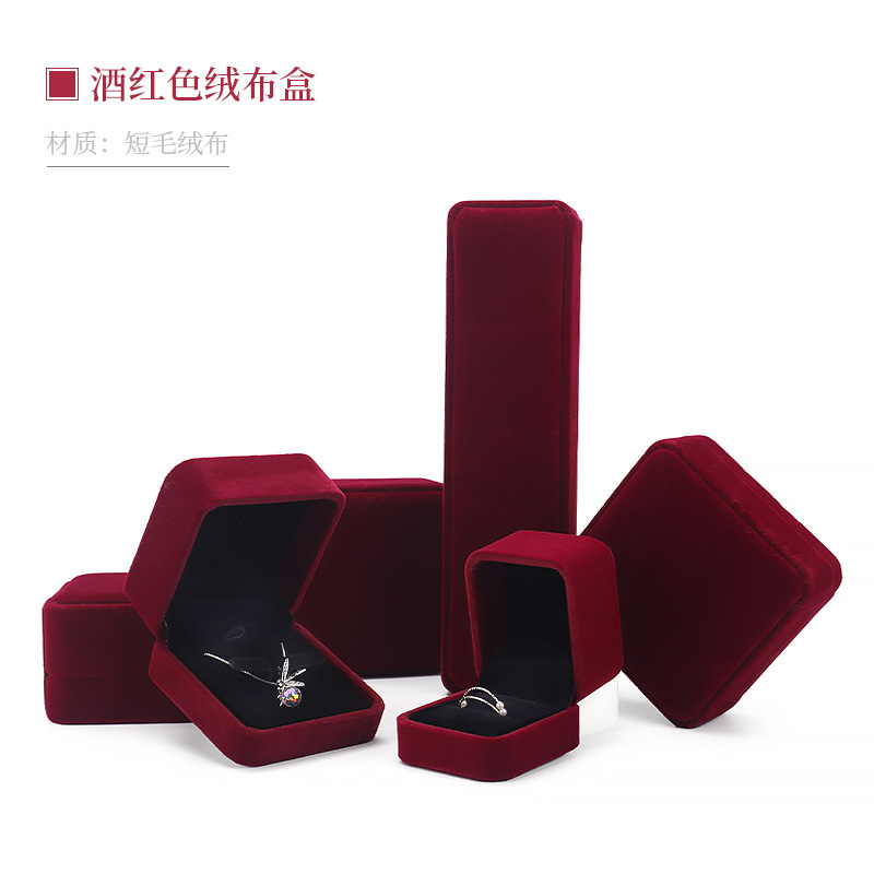 酒红丝绒布戒指盒饰品收纳盒