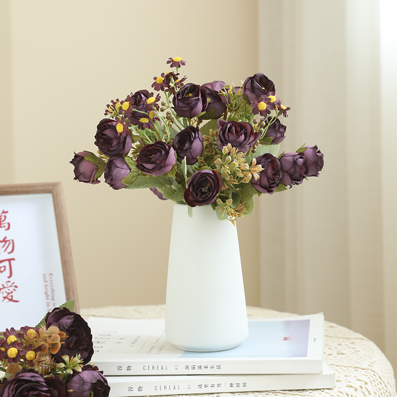 欧式秋色ins风玫瑰花牡丹仿真花假花小花束餐桌花艺摆件茶几装饰