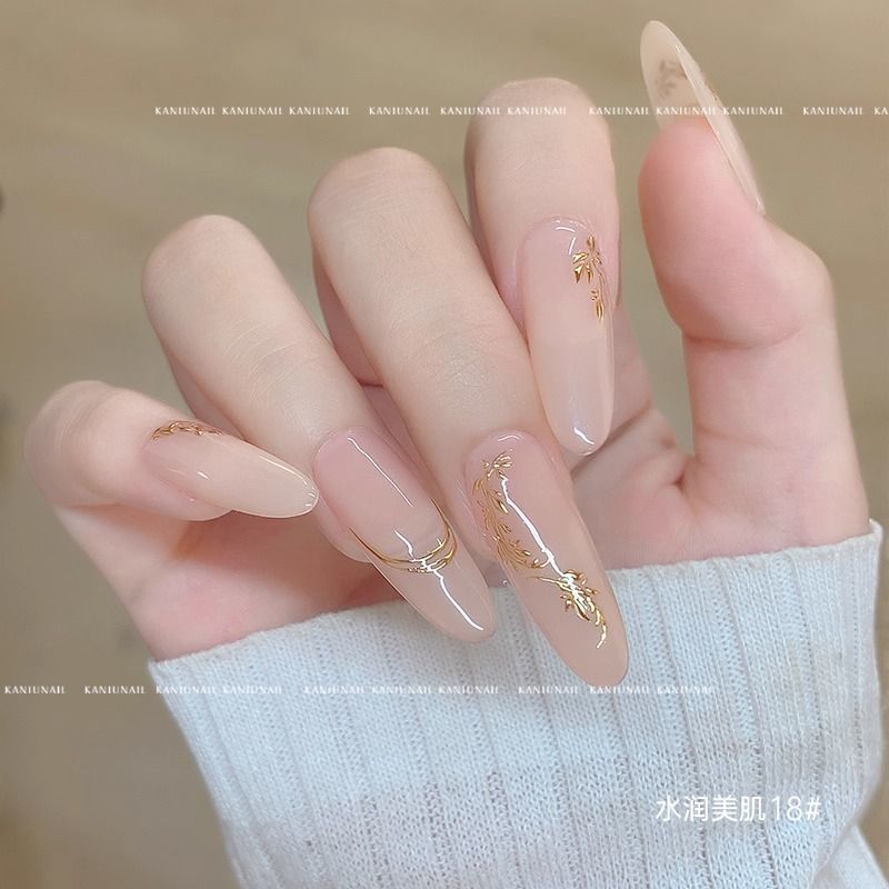 国风金枝玉叶美甲贴纸秋季网红新款烫金叶子指甲穿戴甲装饰带背胶