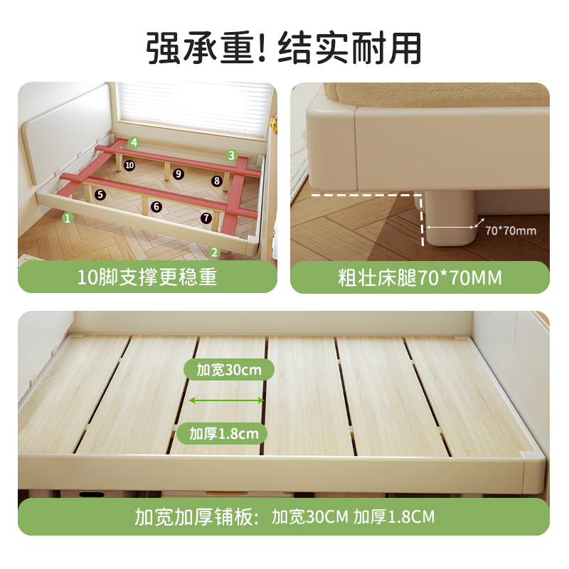 榻榻米床1米5全实木儿童床排骨架小户型卧室1米2单人床橡木半高床