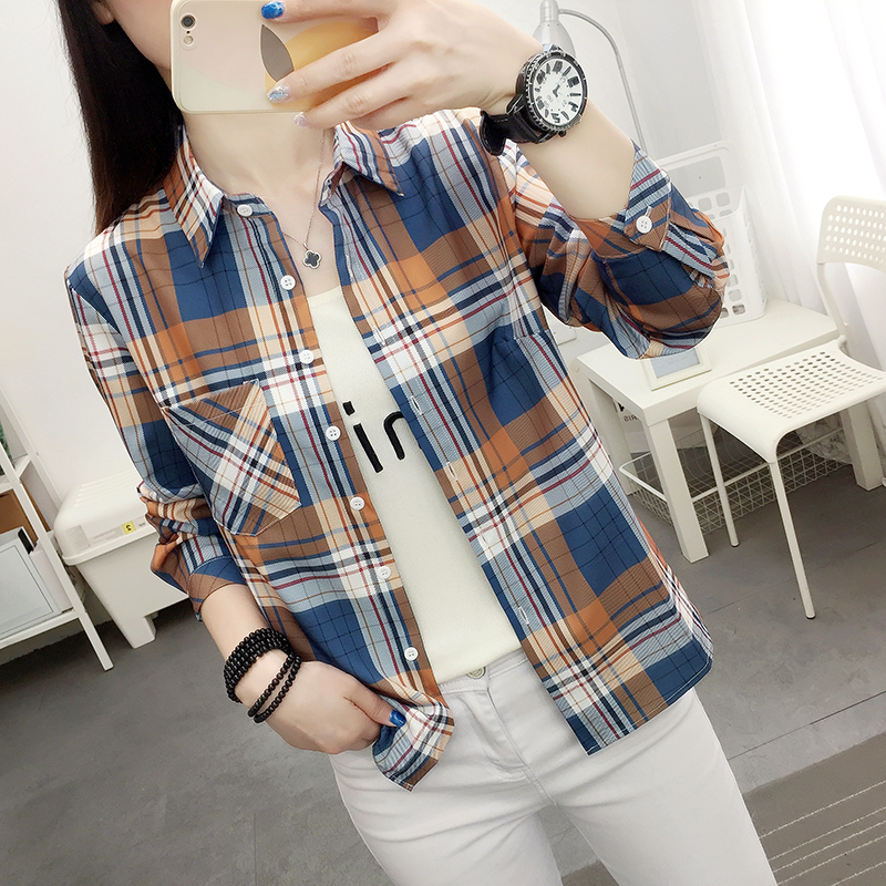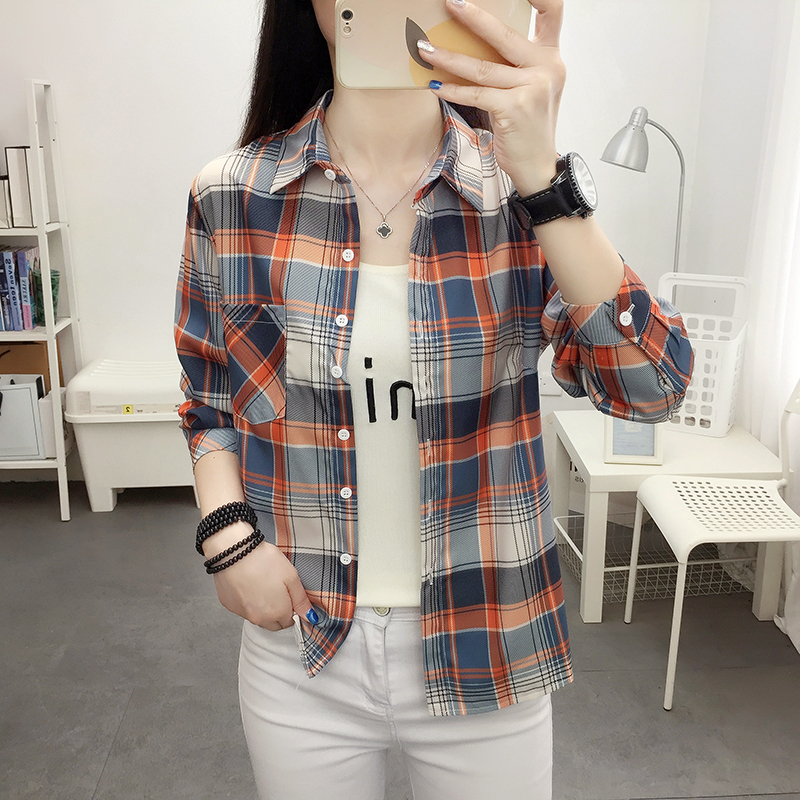 格子衬衫女长袖新款韩版复古港味打底衫衣大码春秋装休闲单穿外套