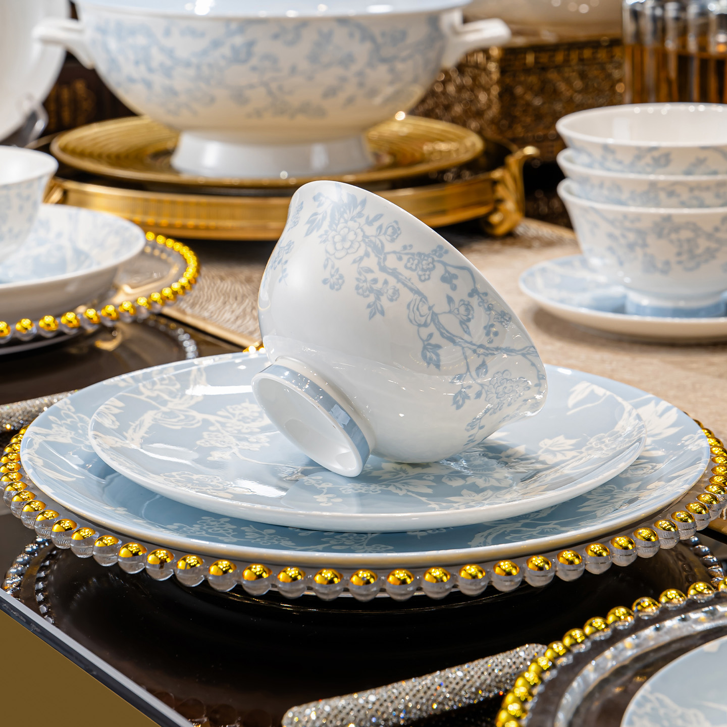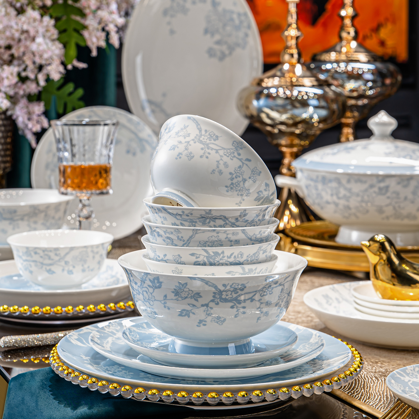 景德镇2025新款骨瓷餐具套装高档浮雕纹碗碟套装家用乔迁送礼