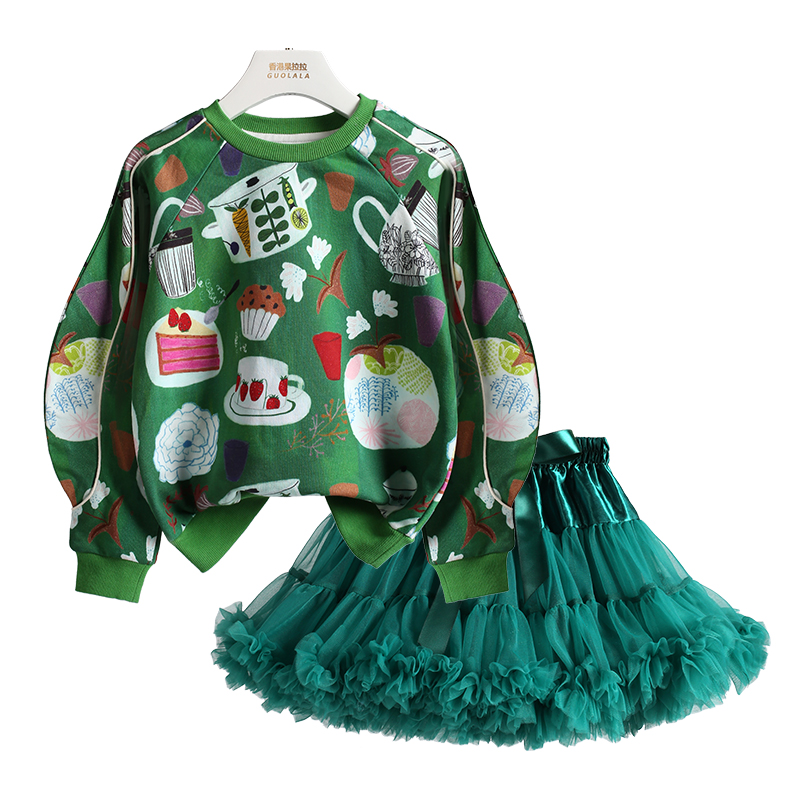 女童套装裙子2025春秋新款时髦洋气女孩纯棉卫衣纱裙tutu裙两件套