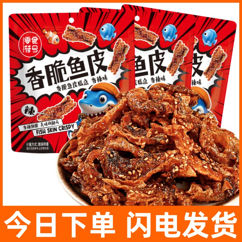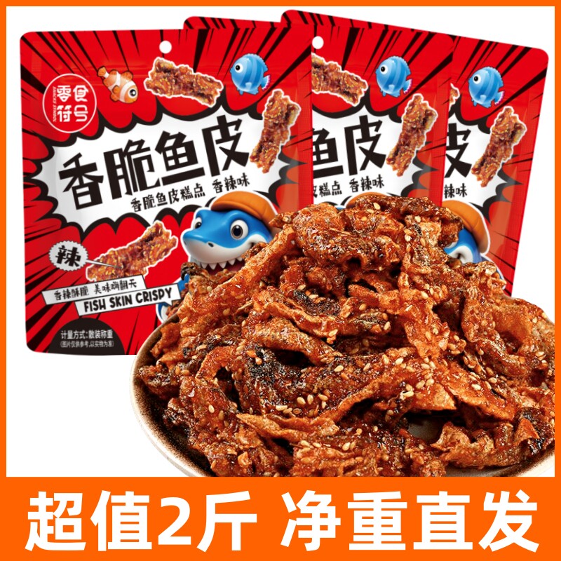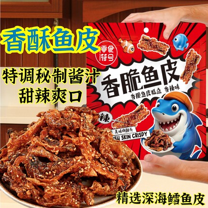 即食香辣鱼皮脆零食250g大包装麻辣鱼皮干蜜汁甜辣鳕鱼皮海鲜小吃