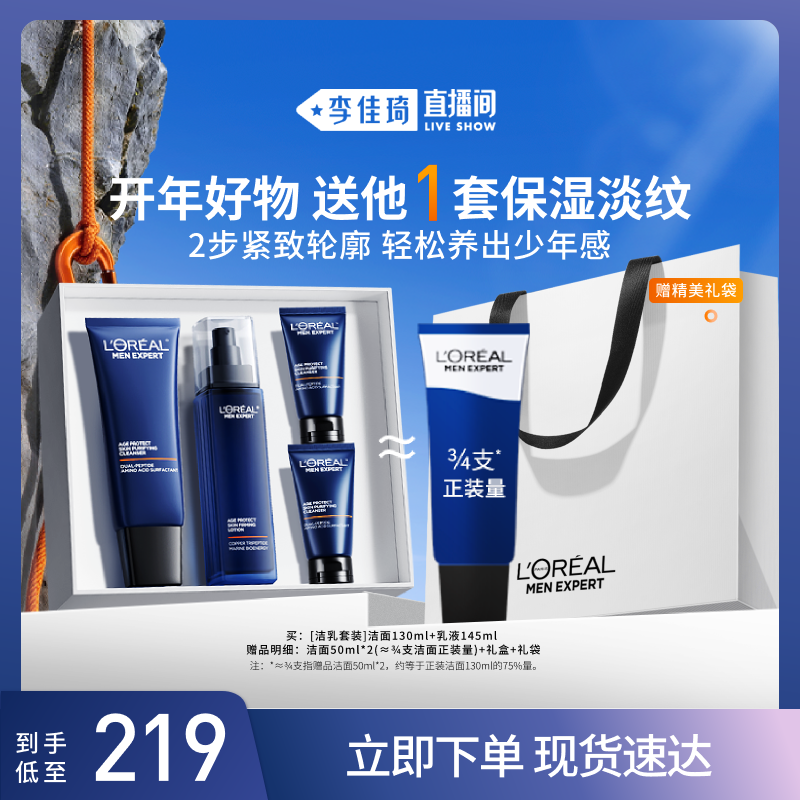 【李佳琦直播间】欧莱雅男士淡纹水乳套装紧致抗皱保湿护肤礼物*