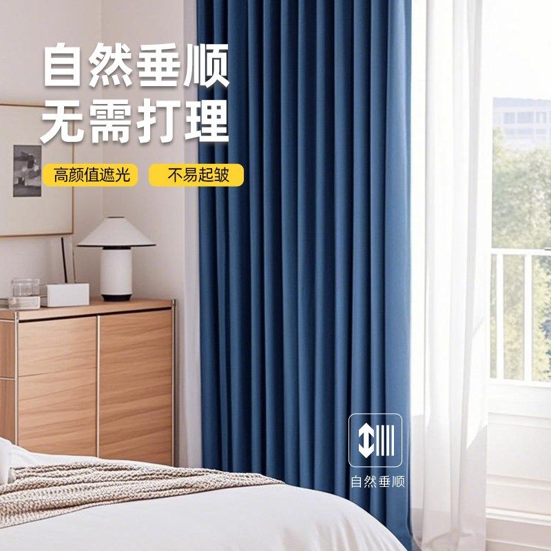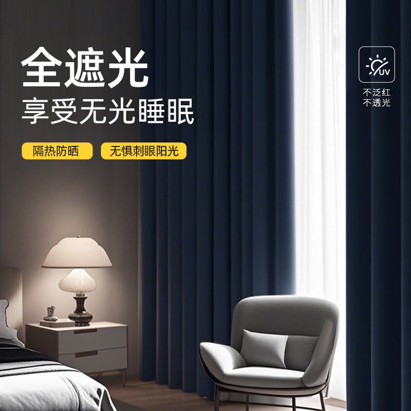 卧室窗帘全遮光2025新款加厚隔音隔热免打孔安装防晒遮阳布高级感