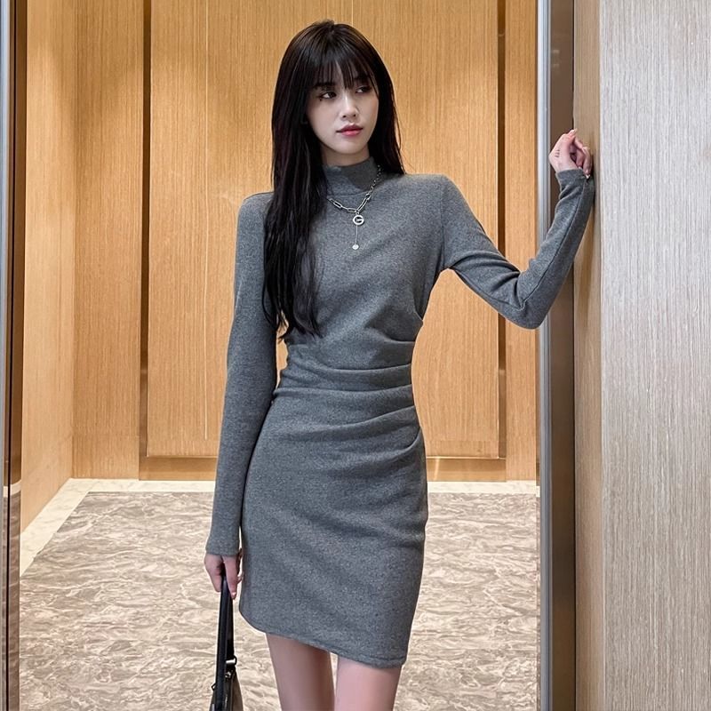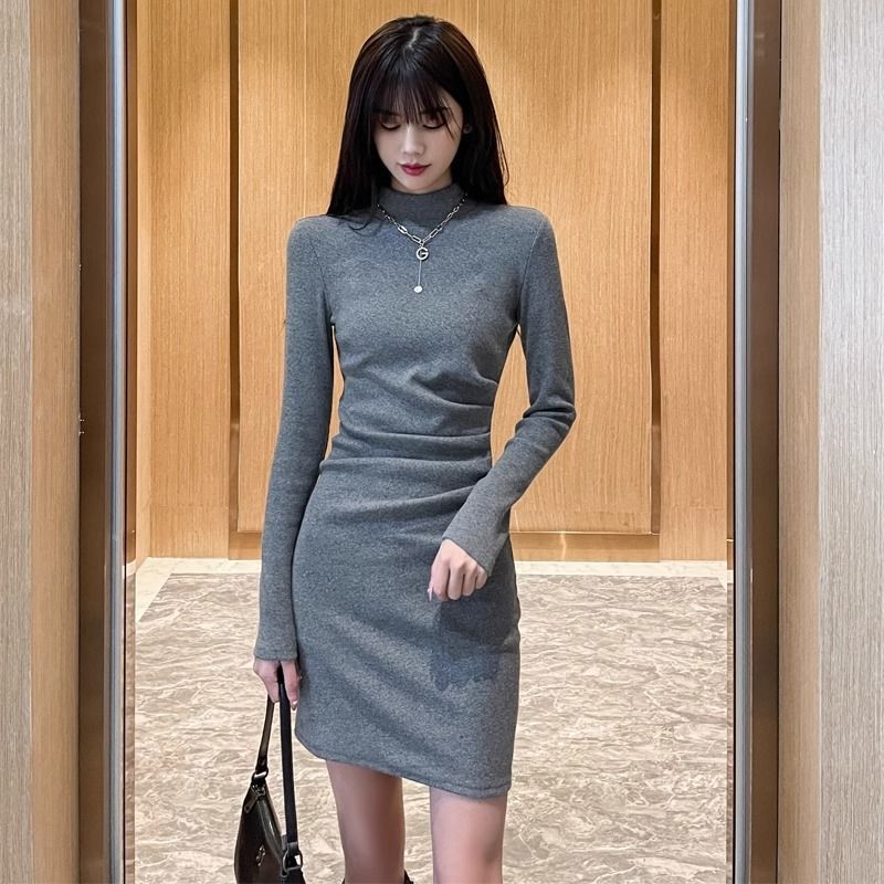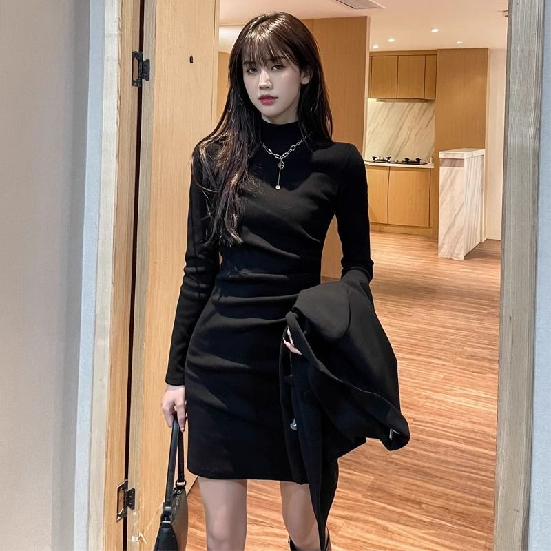 春秋黑色显瘦打底连衣裙女2025新款今年流行爆款包臀裙修身针织裙