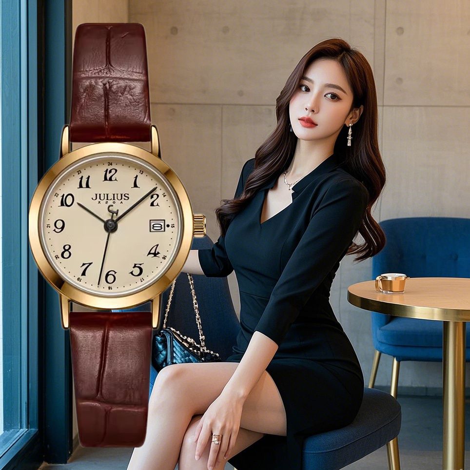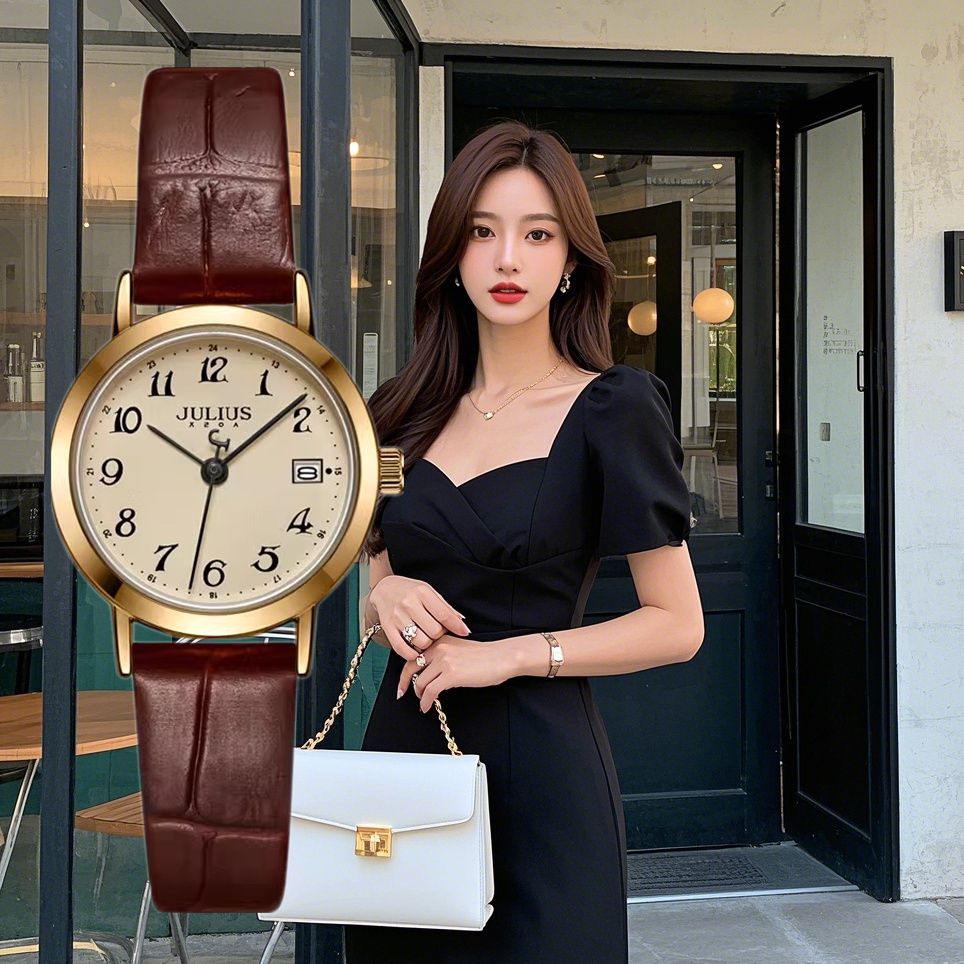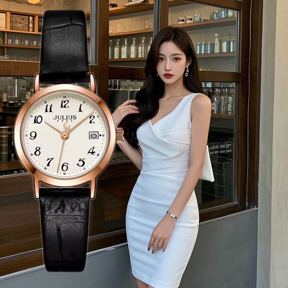 聚利时手表精致优雅日历白领高级通勤时尚百搭真皮带石英女表1404