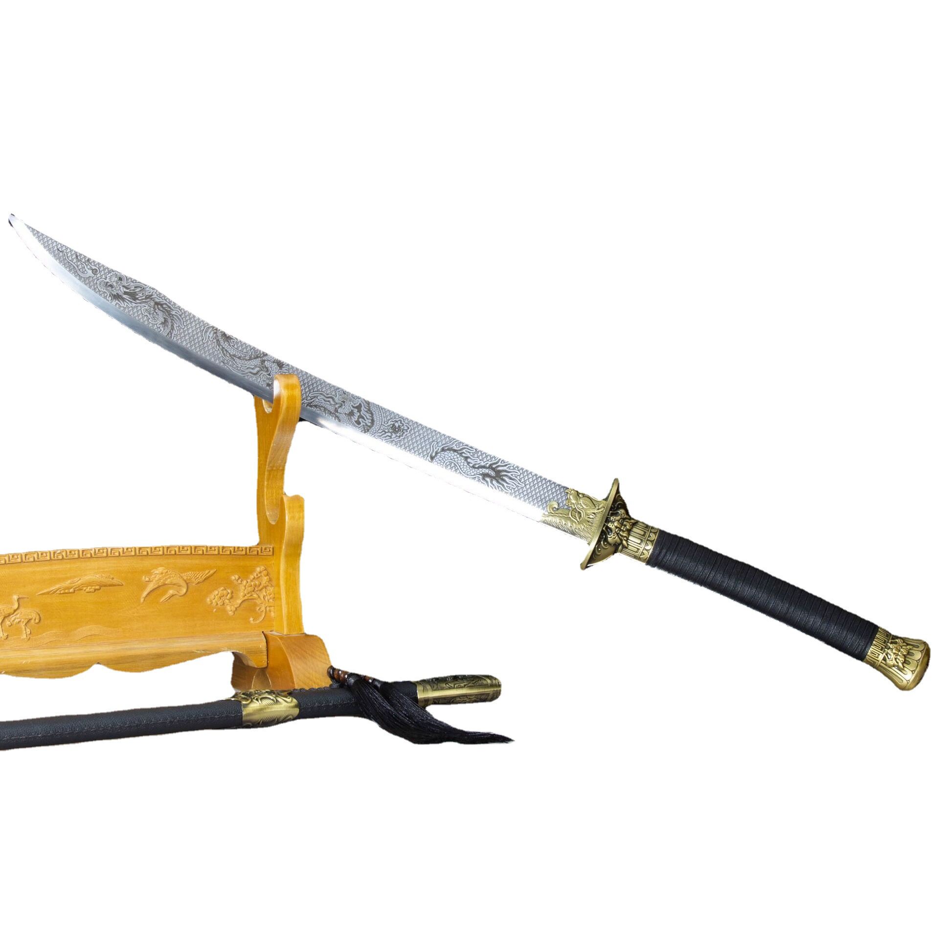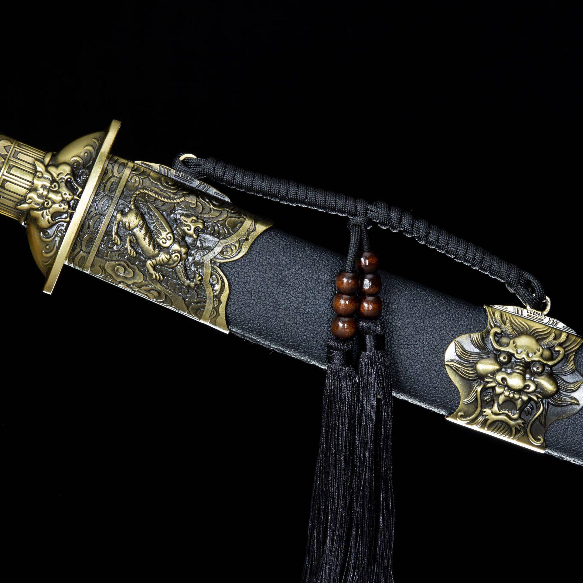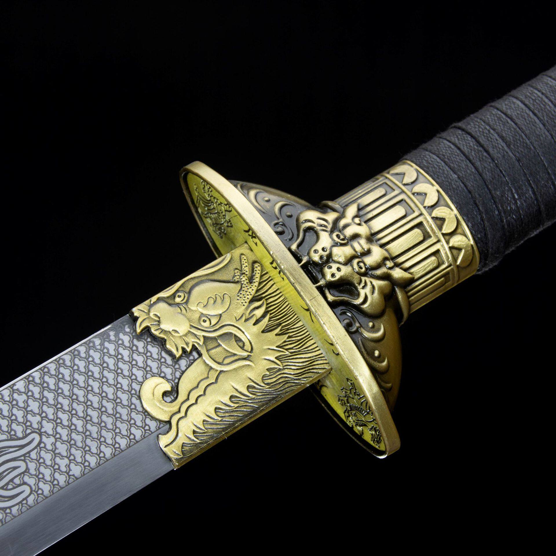 龙泉市刀剑高锰钢刻花双手牛尾刀康熙战刀工艺品宝剑冷兵器未开刃