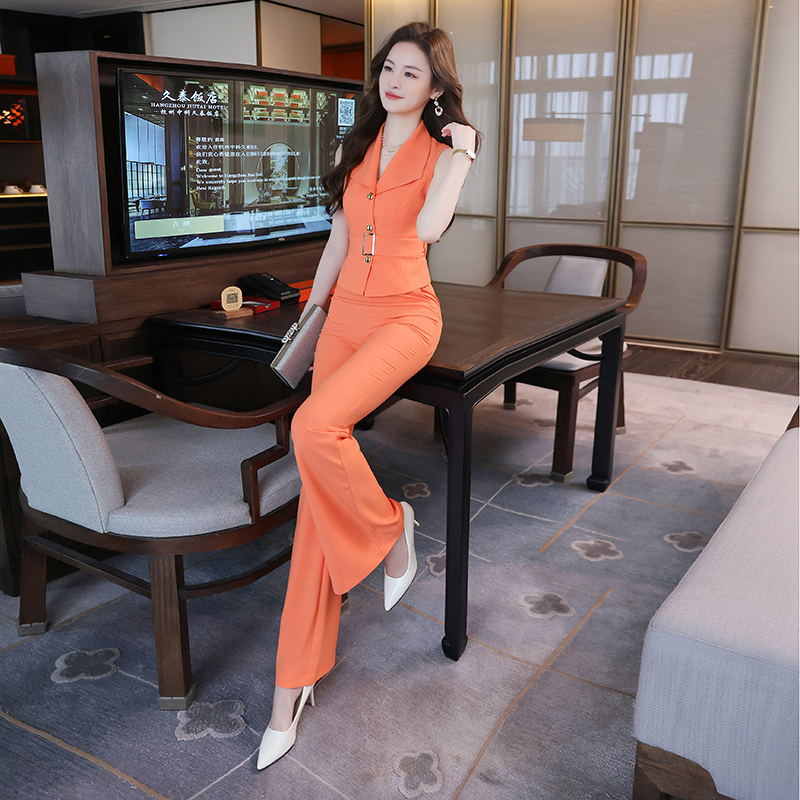 时夏季尚气质套装女翻领无袖挂脖上衣阔腿裤两件套女装御姐高级感