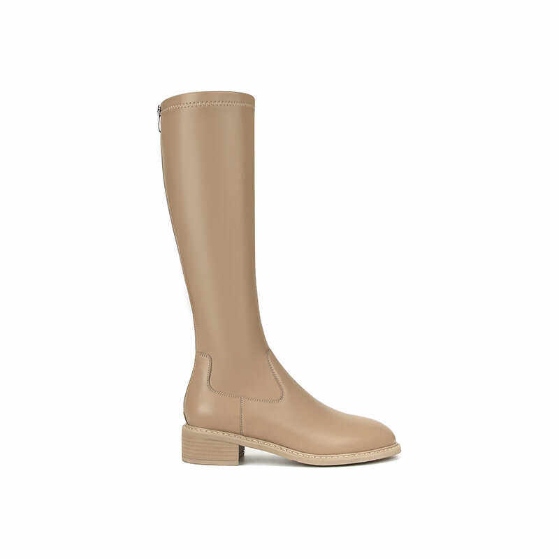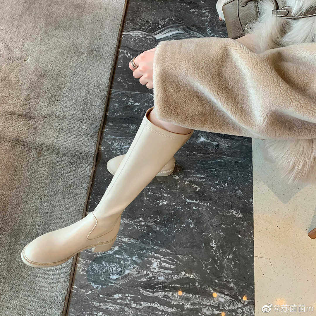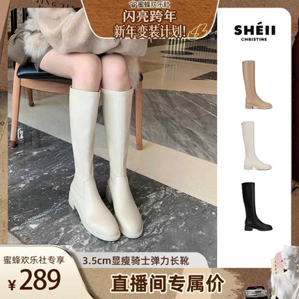 【蜜蜂欢乐社】苏茵茵3.5cm显瘦骑士中筒靴弹力长靴女瘦腿靴