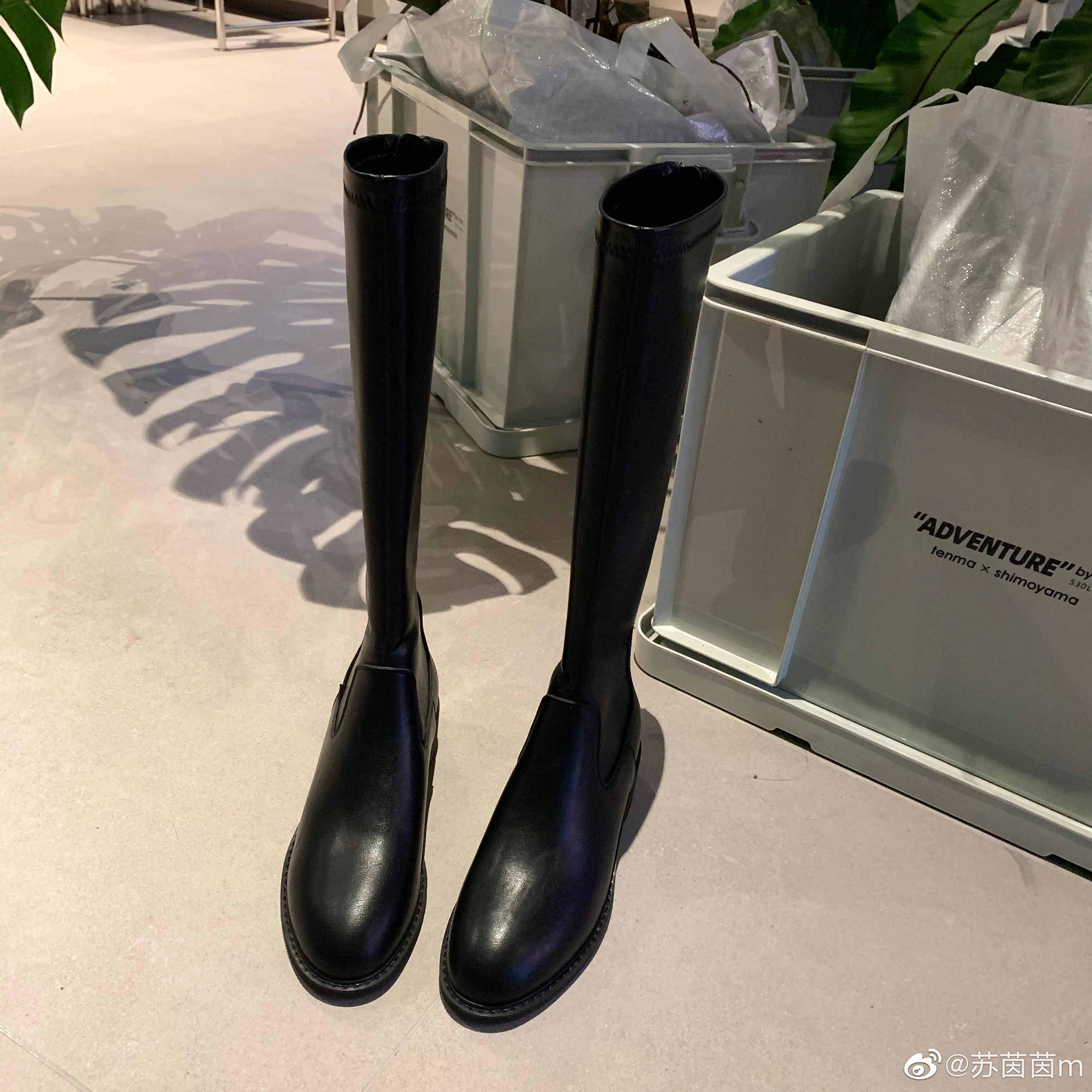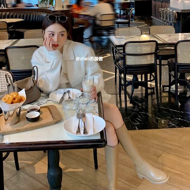 真皮韩国粗跟瘦腿靴sheii苏茵茵