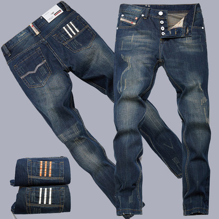 修身复古风做旧小脚韩版牛仔裤