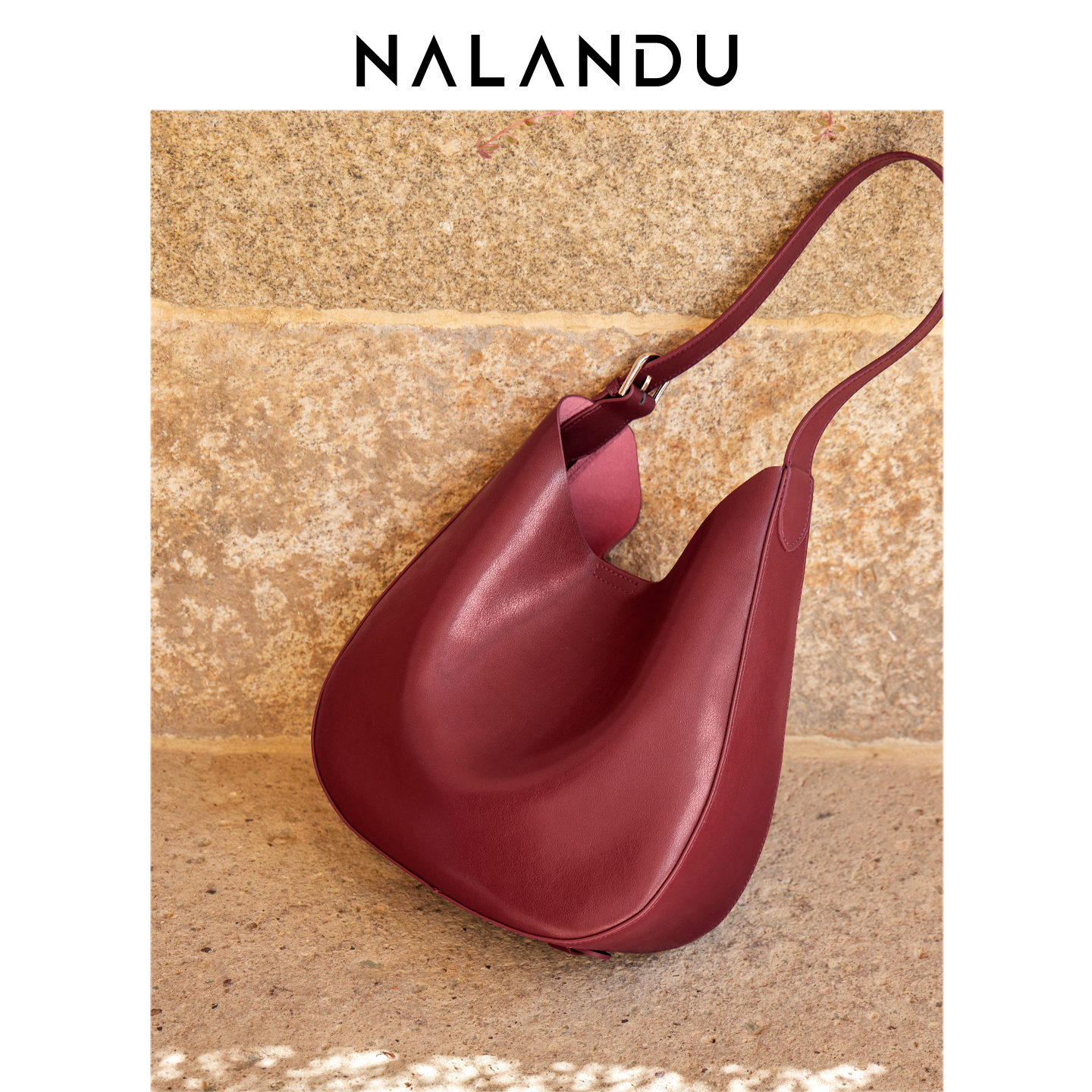 纳兰杜红色包包女式2025新款托特包女秋冬植鞣牛皮hobo包女包单肩
