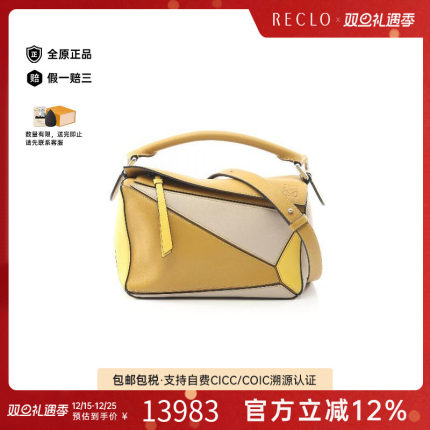 中古Loewe罗意威女包A级95新puzzle拼图牛皮斜挎包棕色