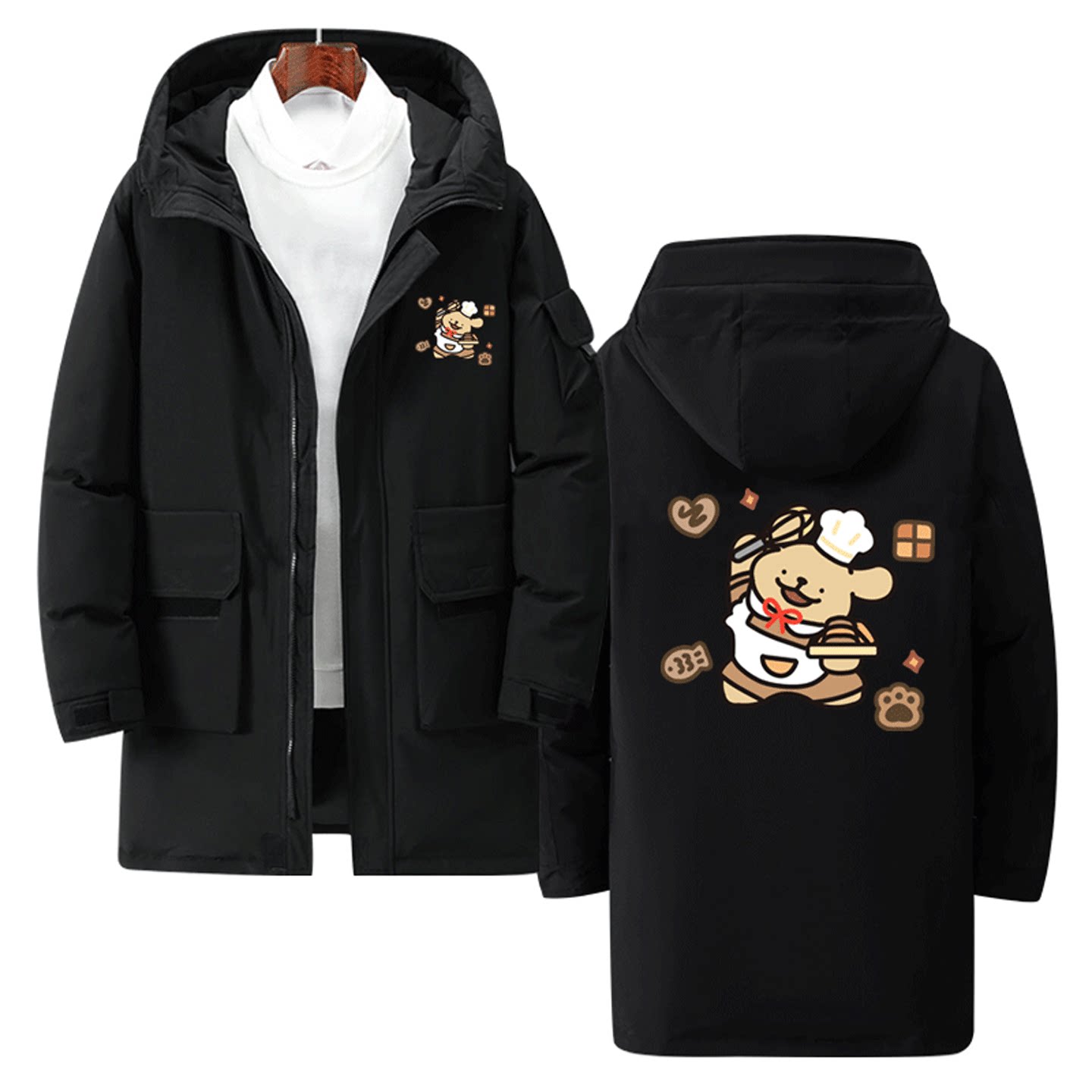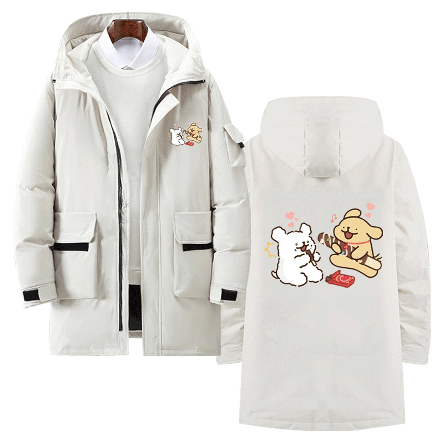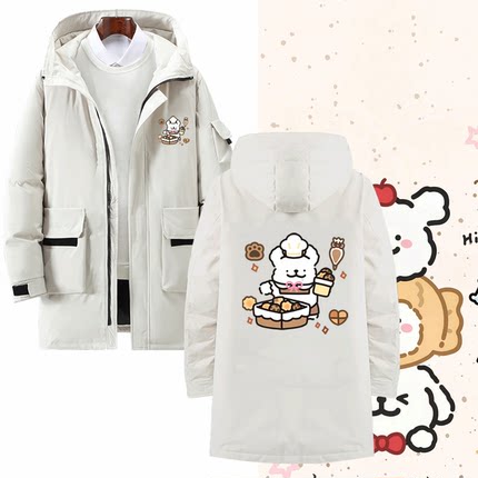 线条小狗联名男女可定制中长款羽绒服马尔济斯小金毛周边卡通可爱