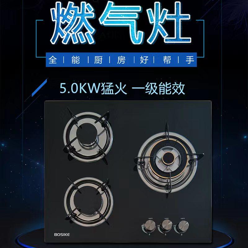 博斯克三眼燃气灶家用多头煤气灶台式嵌入式天然气欧式方型猛火灶