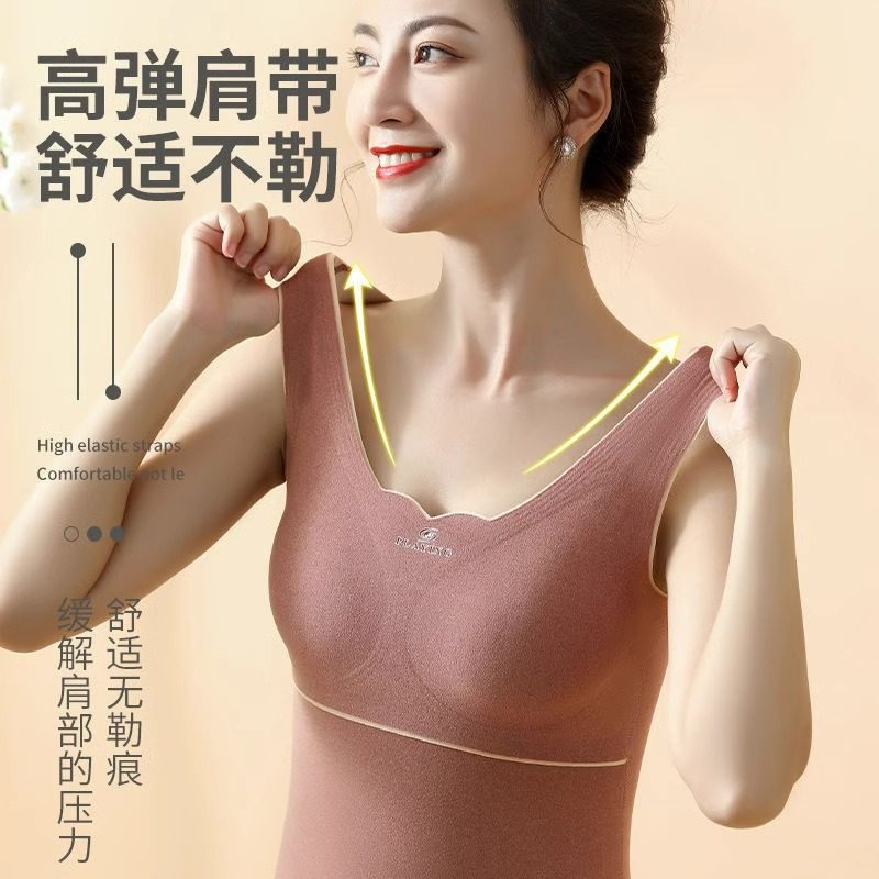 免穿文胸德绒发热保暖背心女加绒加厚薄绒秋冬塑形内衣女内搭