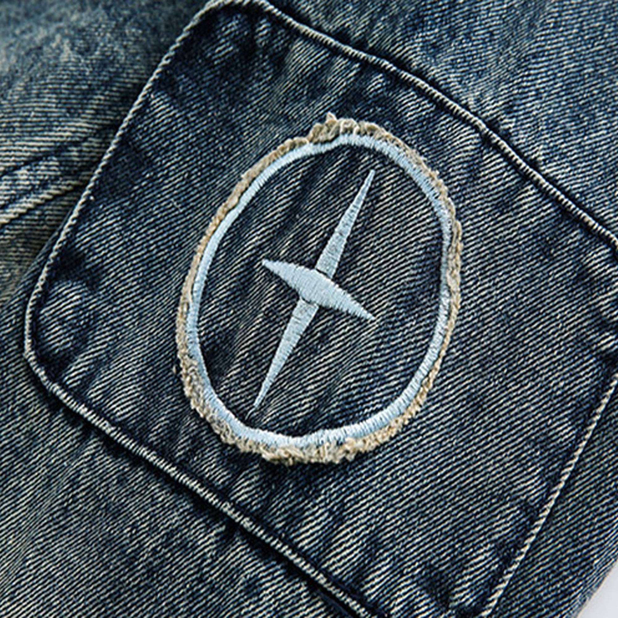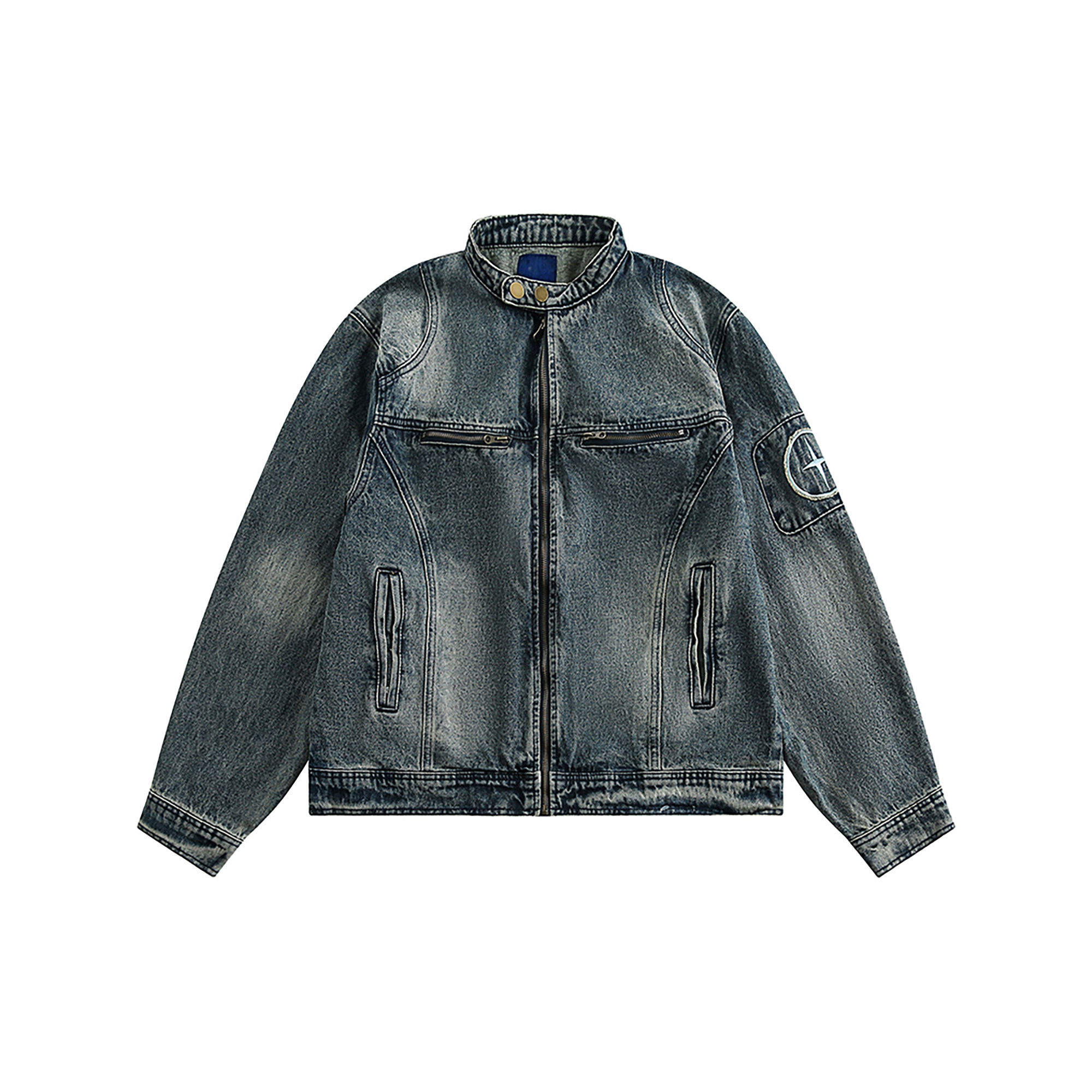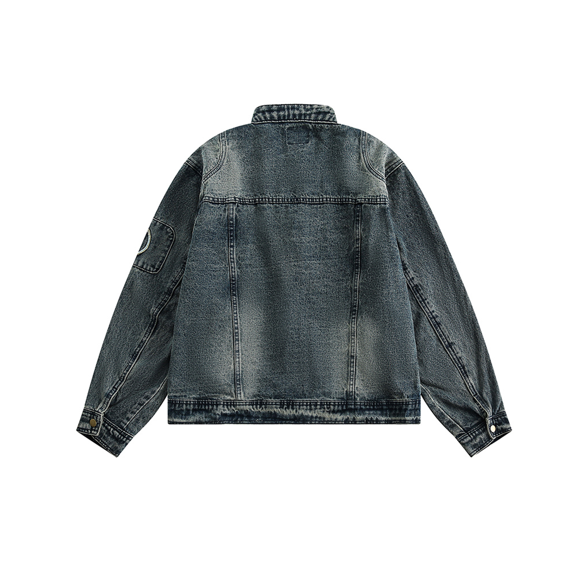 DUSK美式复古水洗做旧牛仔外套女春秋宽松设计感刺绣拉链夹克上衣