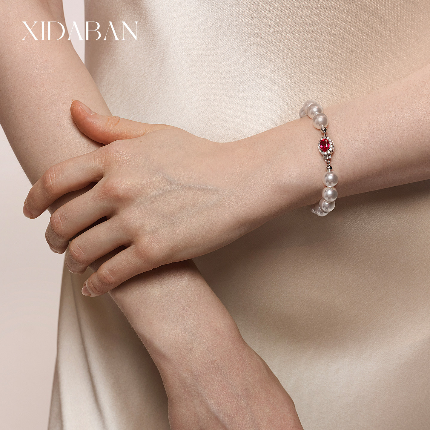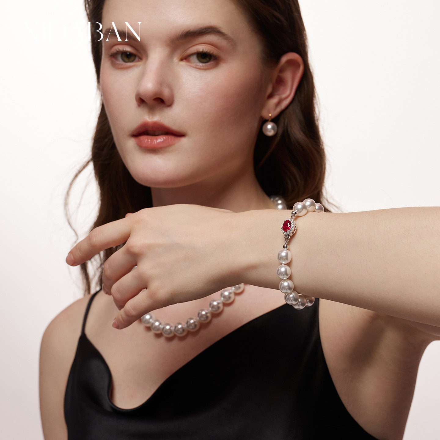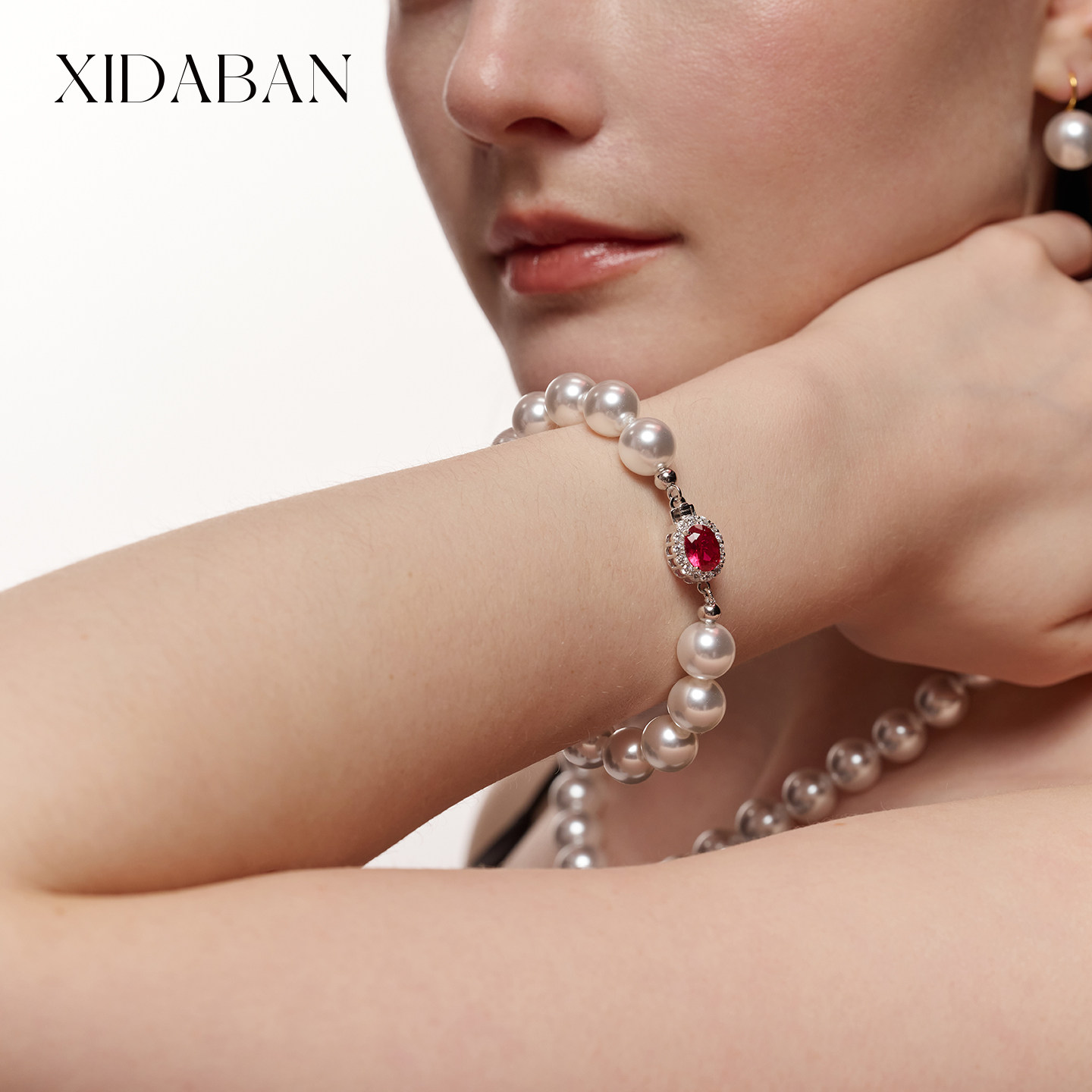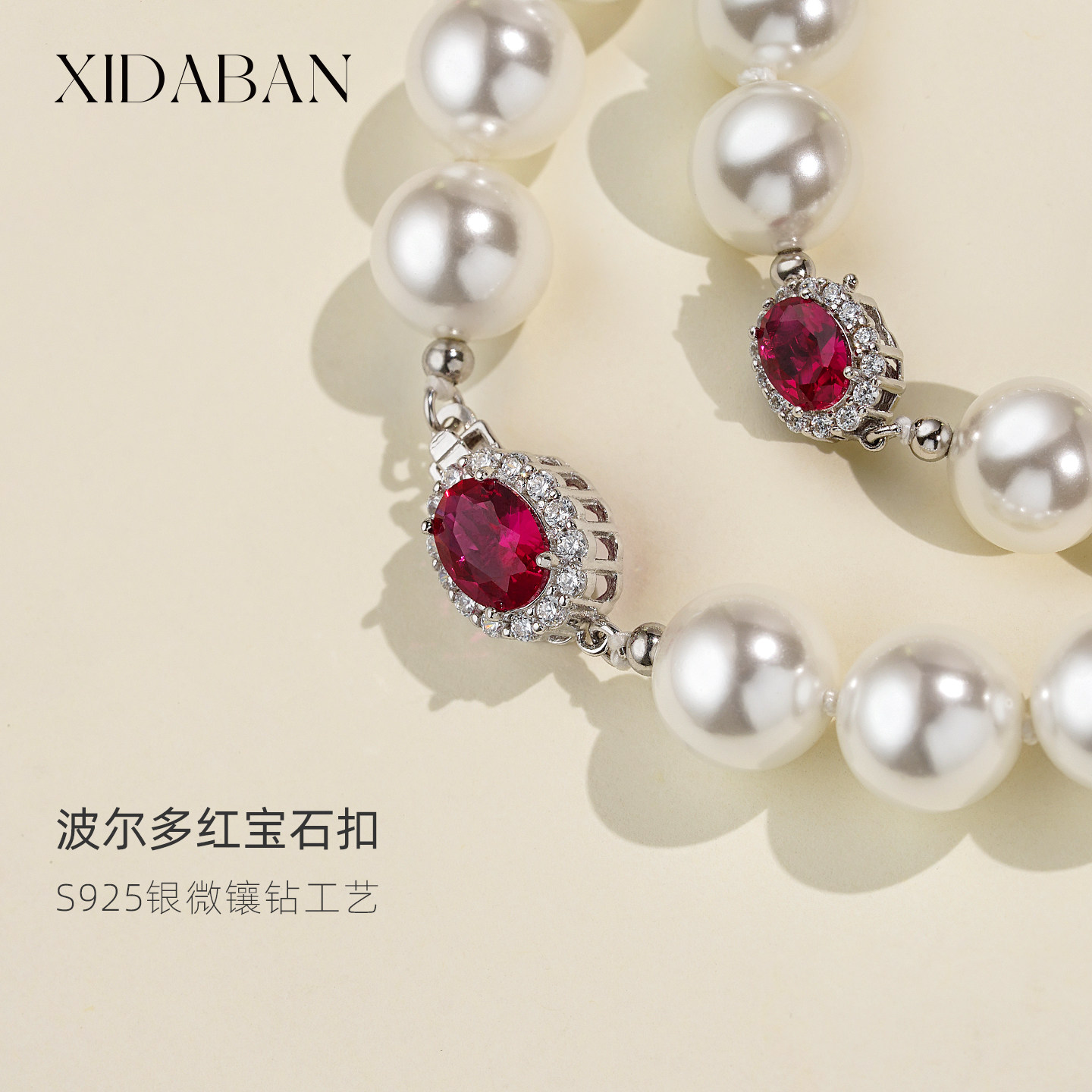 倪妮同款澳母贝珍珠澳白手链波尔多红宝石扣手串轻奢高级感手饰女