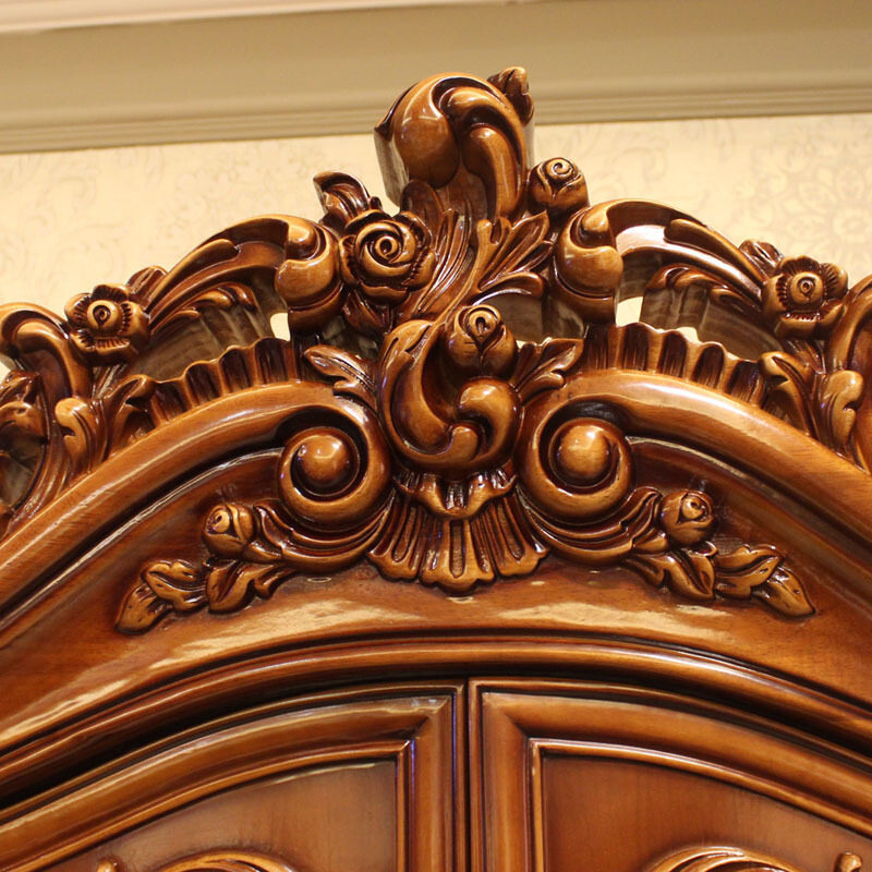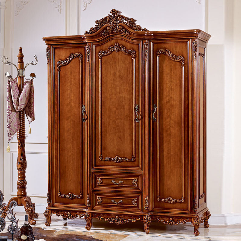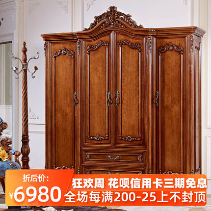 美式全实木衣柜卧室大衣柜三门四门衣橱复古储物挂衣柜子整体定制