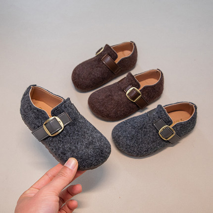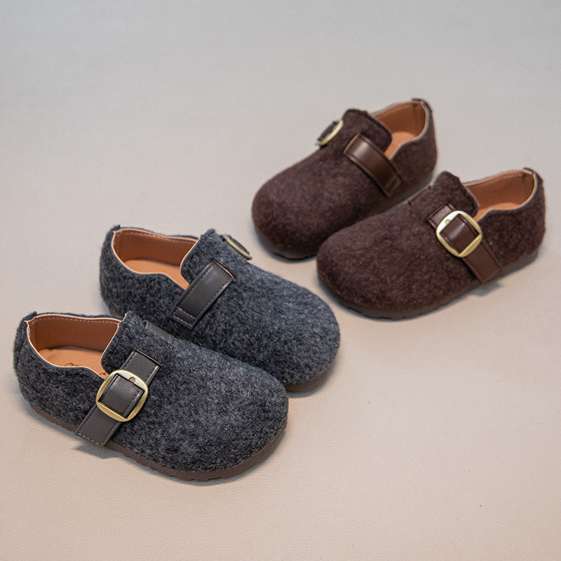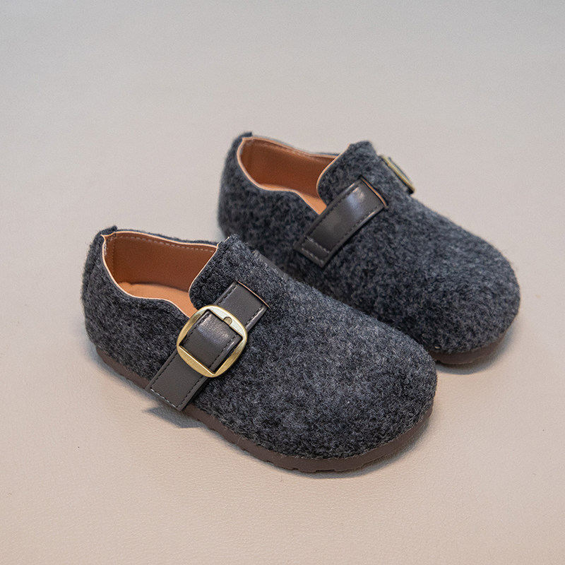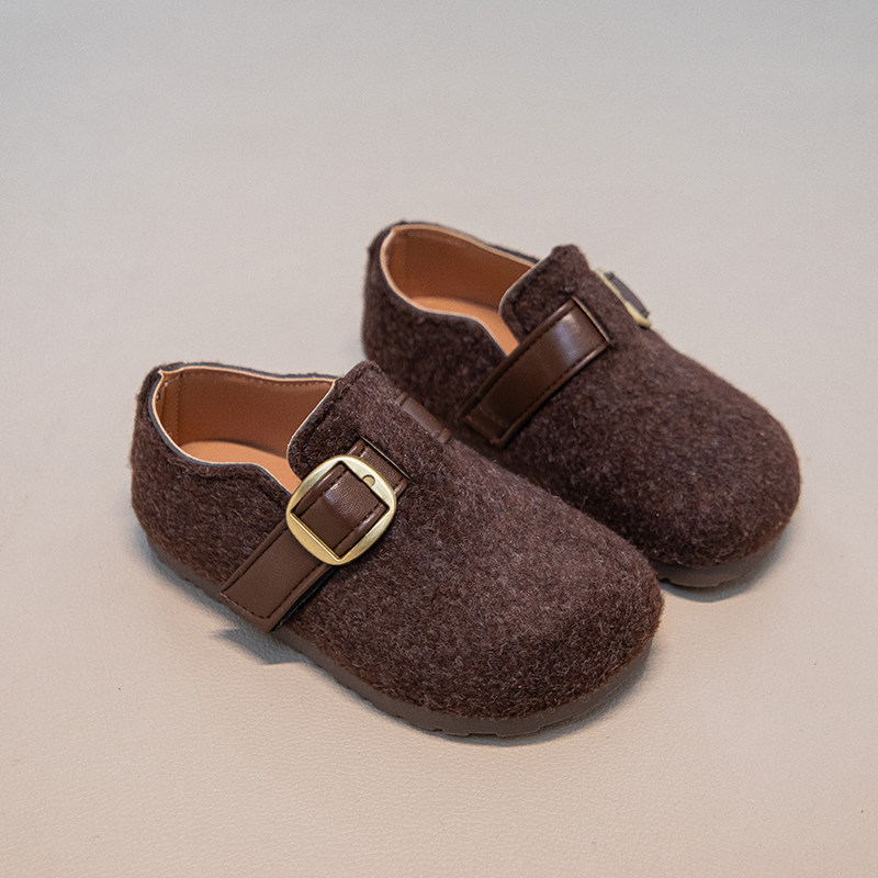 韩版女童毛呢单鞋2026春秋新款儿童复古皮带扣勃肯鞋宝宝休闲皮鞋