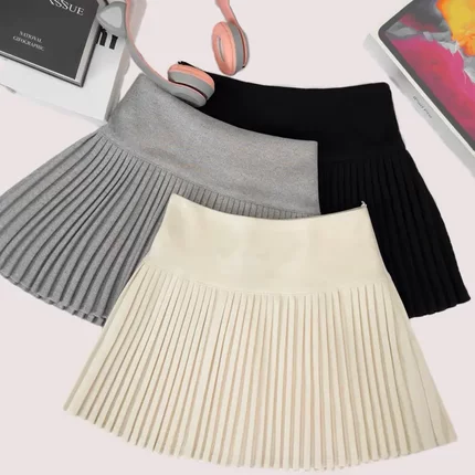 毛呢半身裙女秋冬新款复古高腰显瘦百褶裙休闲百搭防走光A字短裙