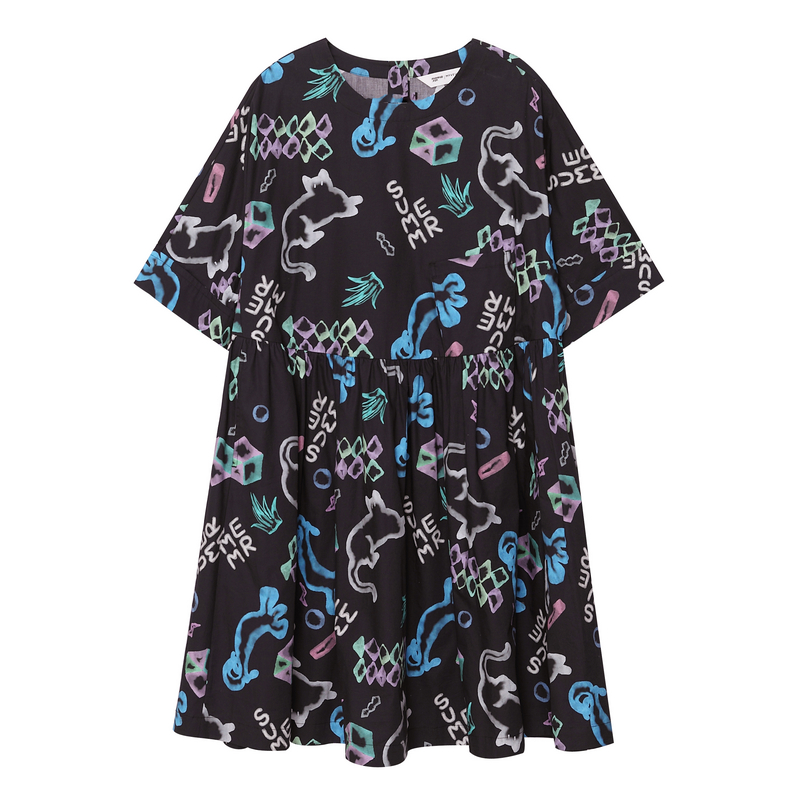 MOVEUP幻走2024夏季新款.FUN系列彩色数码印花设计师纯棉连衣裙