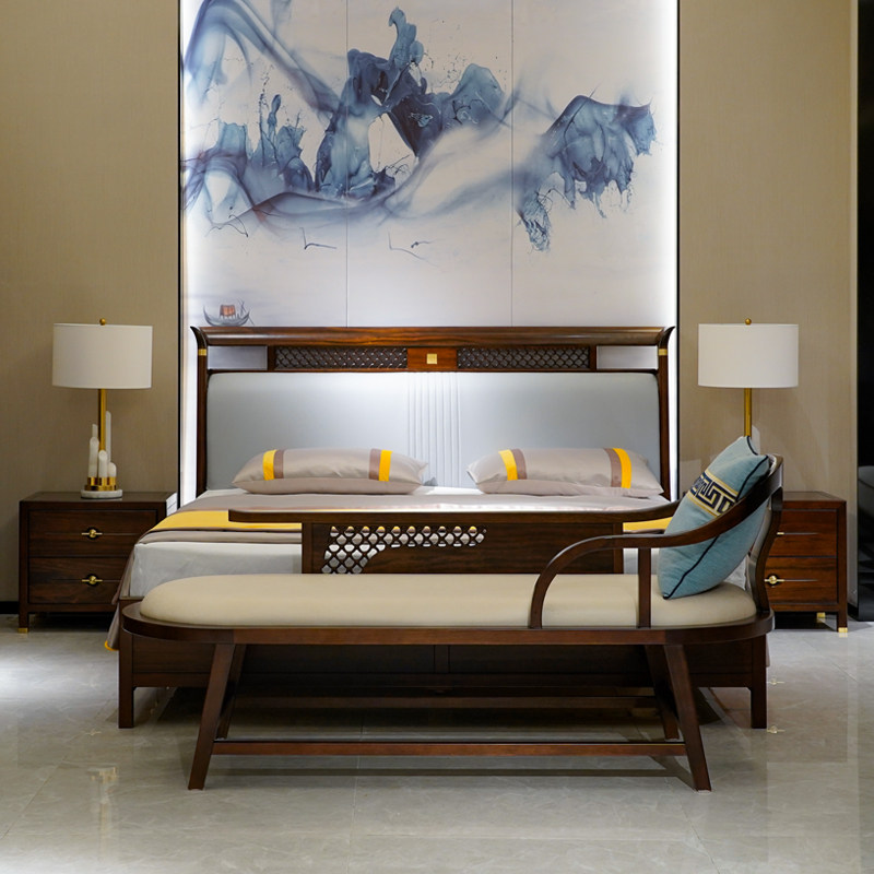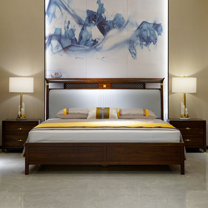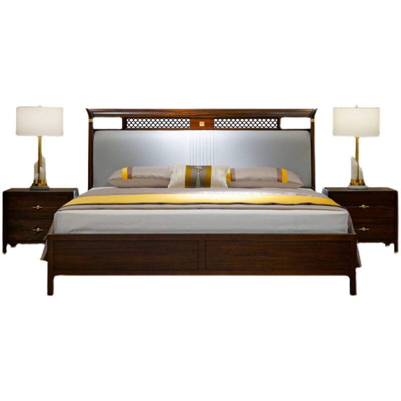 半墨现代新中式乌金木实木床卧室家用软靠床1.5 1.8米双人床婚床