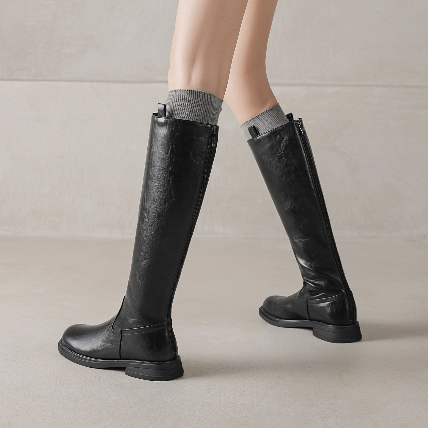 ladyblack棕色复古高筒骑士靴女秋冬后拉链粗中跟大码长靴子41-43