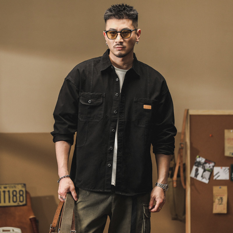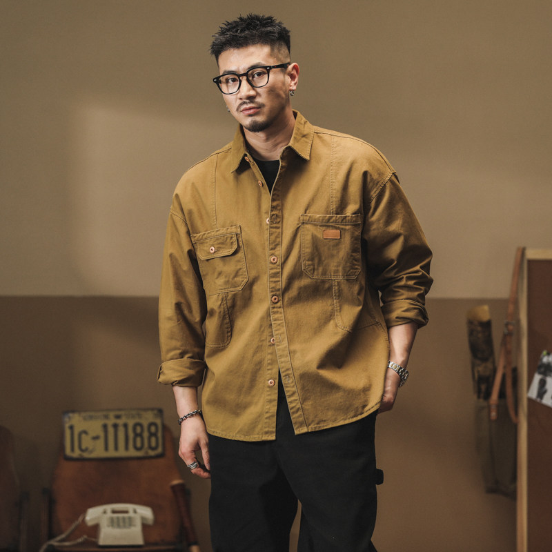 美式重磅复古工装衬衫外套男长袖2024春季宽松硬汉猎装教练夹克潮