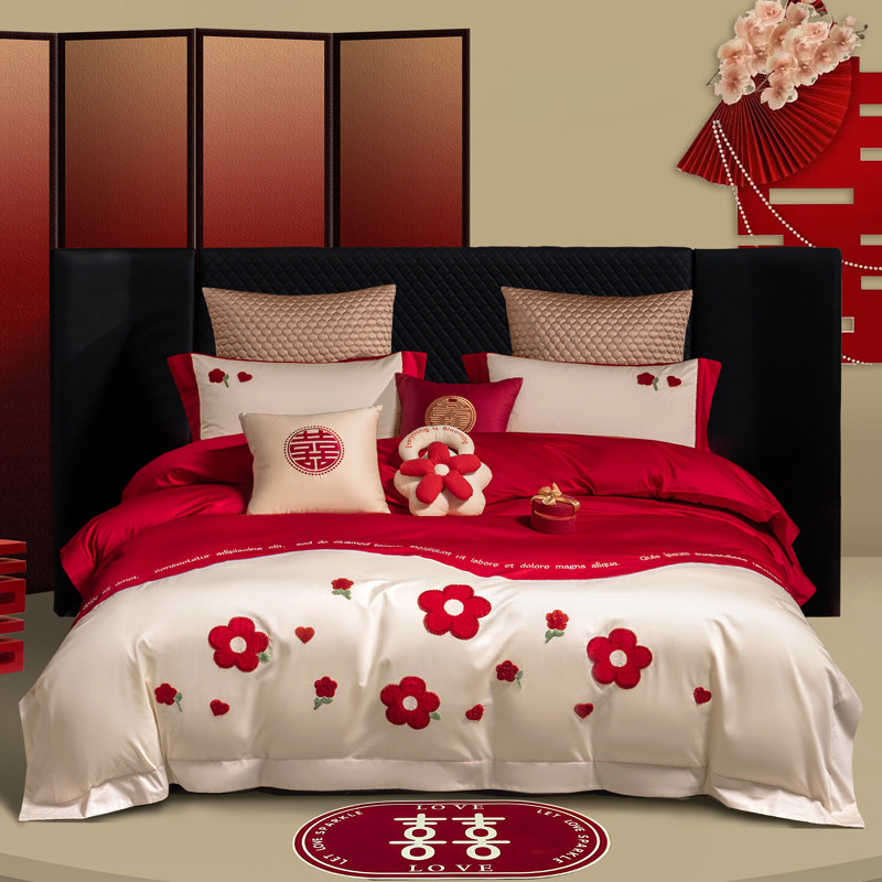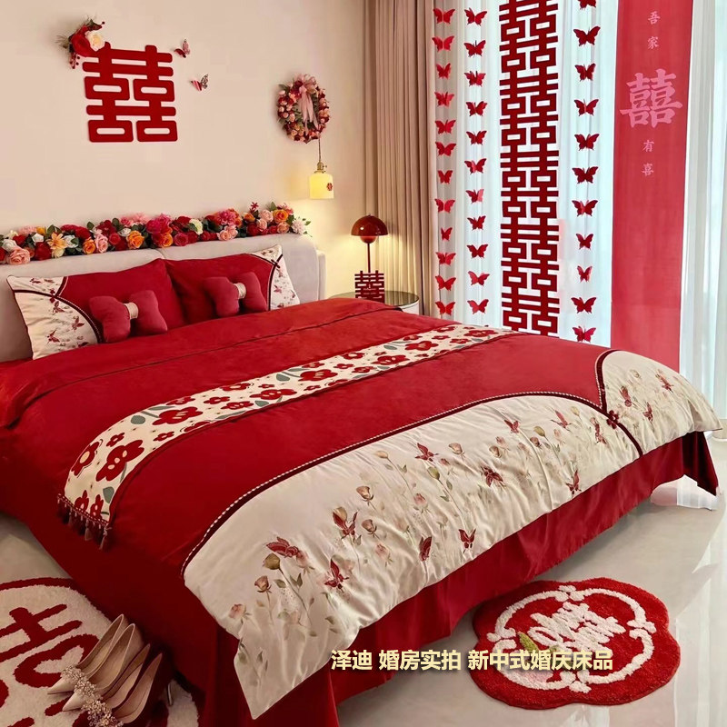 高端新中式四件套结婚婚礼婚庆陪嫁纯棉床单被套奢华高档床上用品