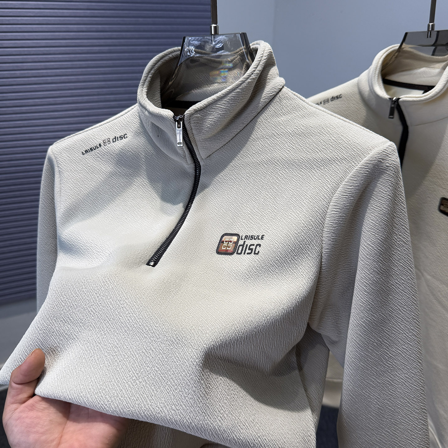 品牌斜纹奥利绒半高领卫衣男加绒加厚秋冬款男装拉链立领套头上衣