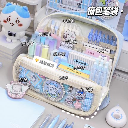 可站立11层痛笔袋大容量痛包ins风初中女生吃谷人好物简约铅笔文具笔盒高颜值创意diy扎板多层吧唧装饰小食量