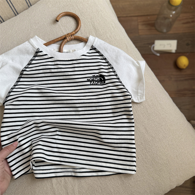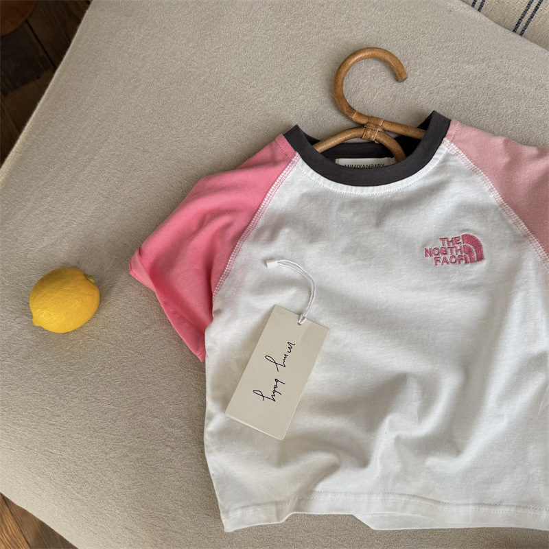 男女童纯棉短袖撞色插肩袖夏季