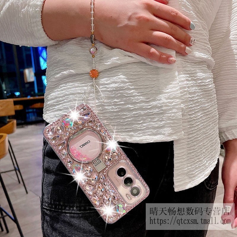 适用于opporeno12手机壳新款reno12pro硅胶软壳全包边防摔镶钻带挂绳reno12个性创意奢华高级感网红潮牌女