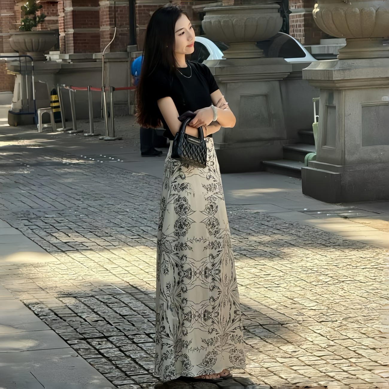 法式高级感复古腰碎花半身