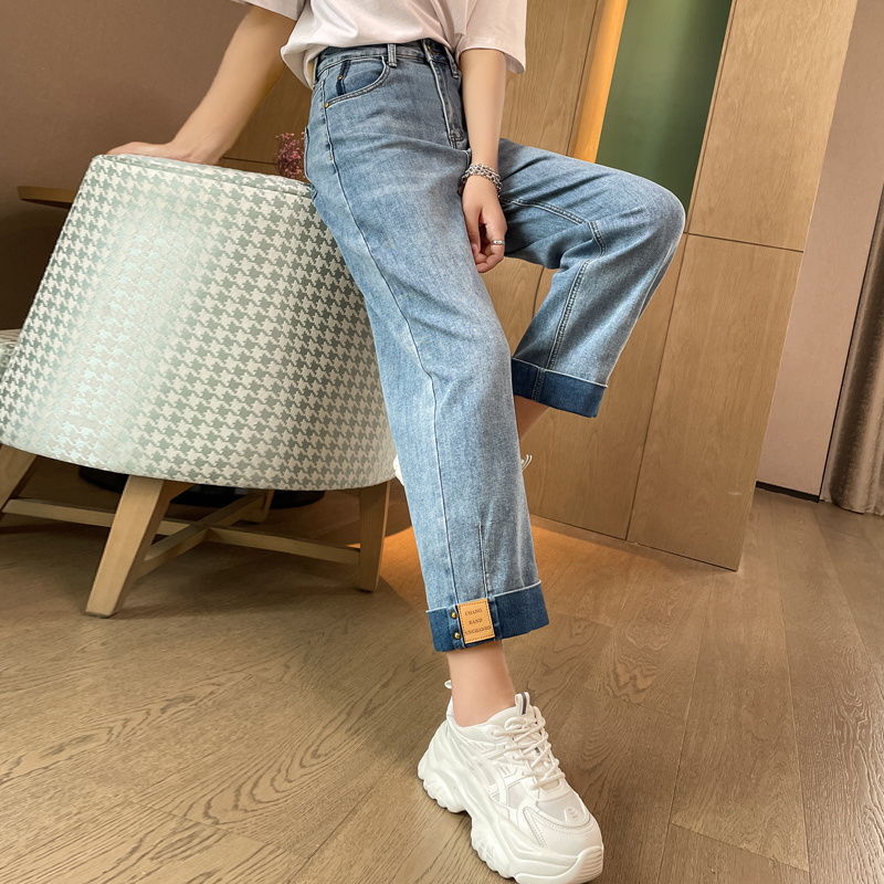 大码胖MM300斤直筒牛仔裤女高腰宽松显瘦九分裤加大加肥烟管裤子