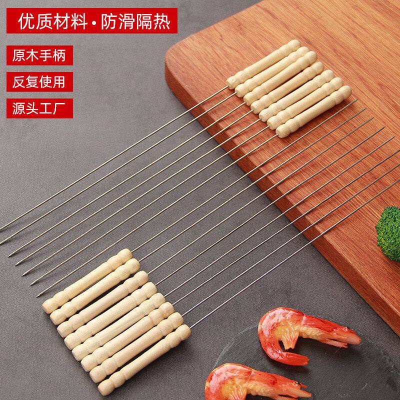 烧烤签子木柄不锈钢圆签烧烤用具烤针羊肉串铁签子钢签烤肉签串针