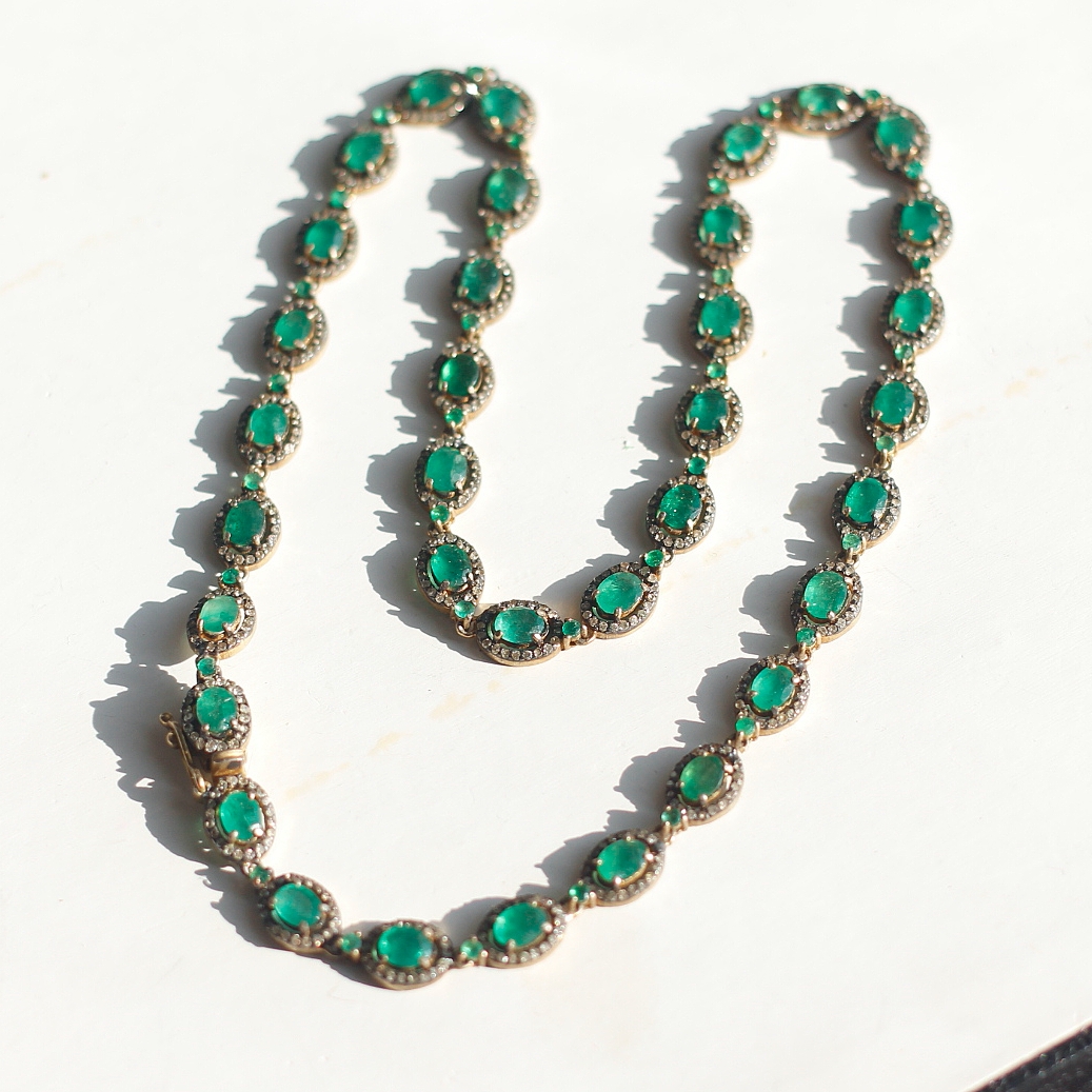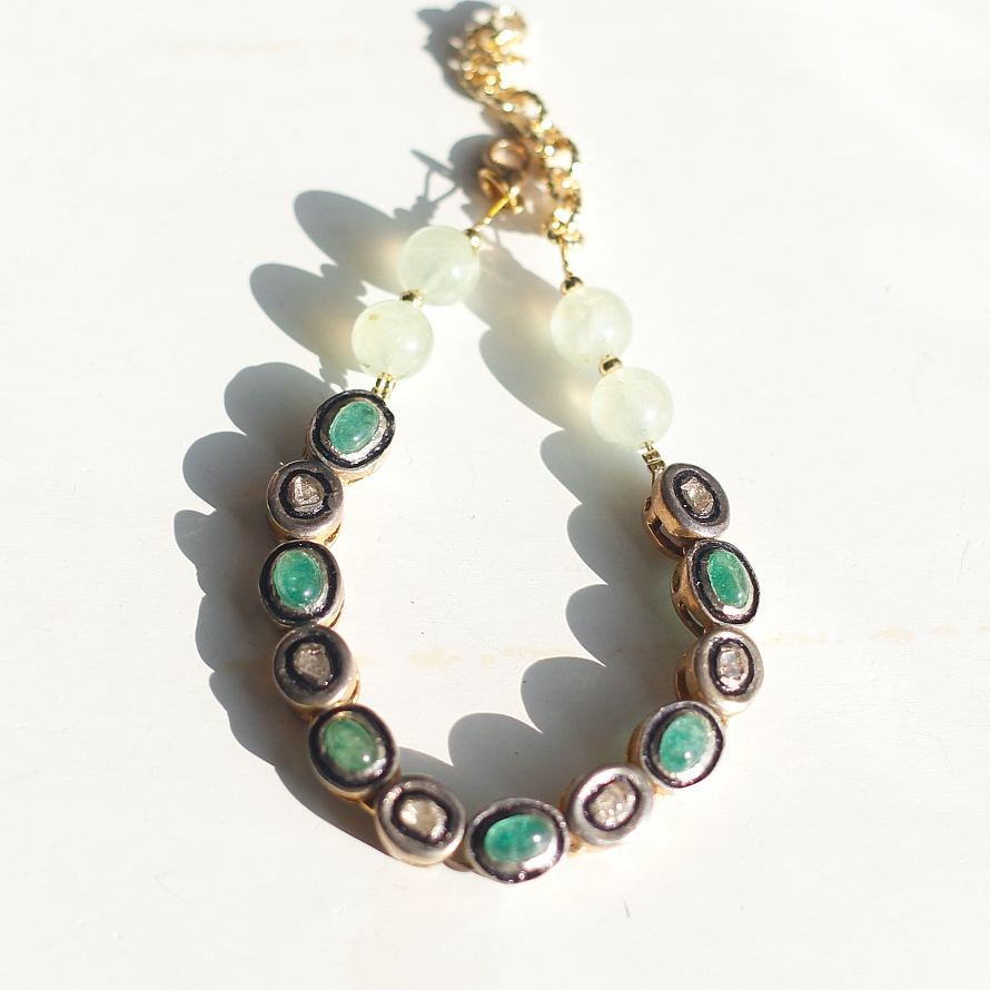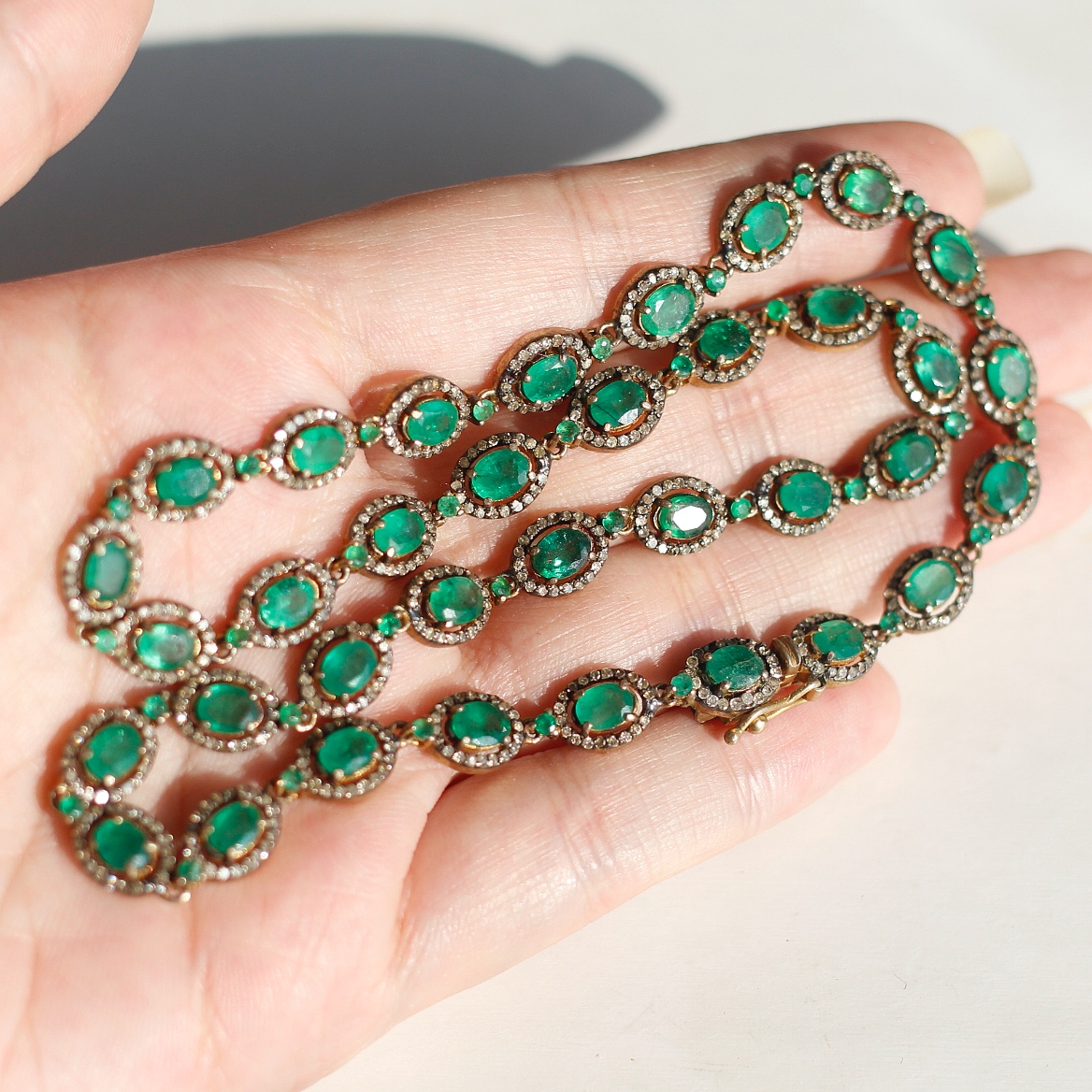 欧美艺术家原创天然祖母绿坦桑石红蓝宝石欧泊手链项链vintage女