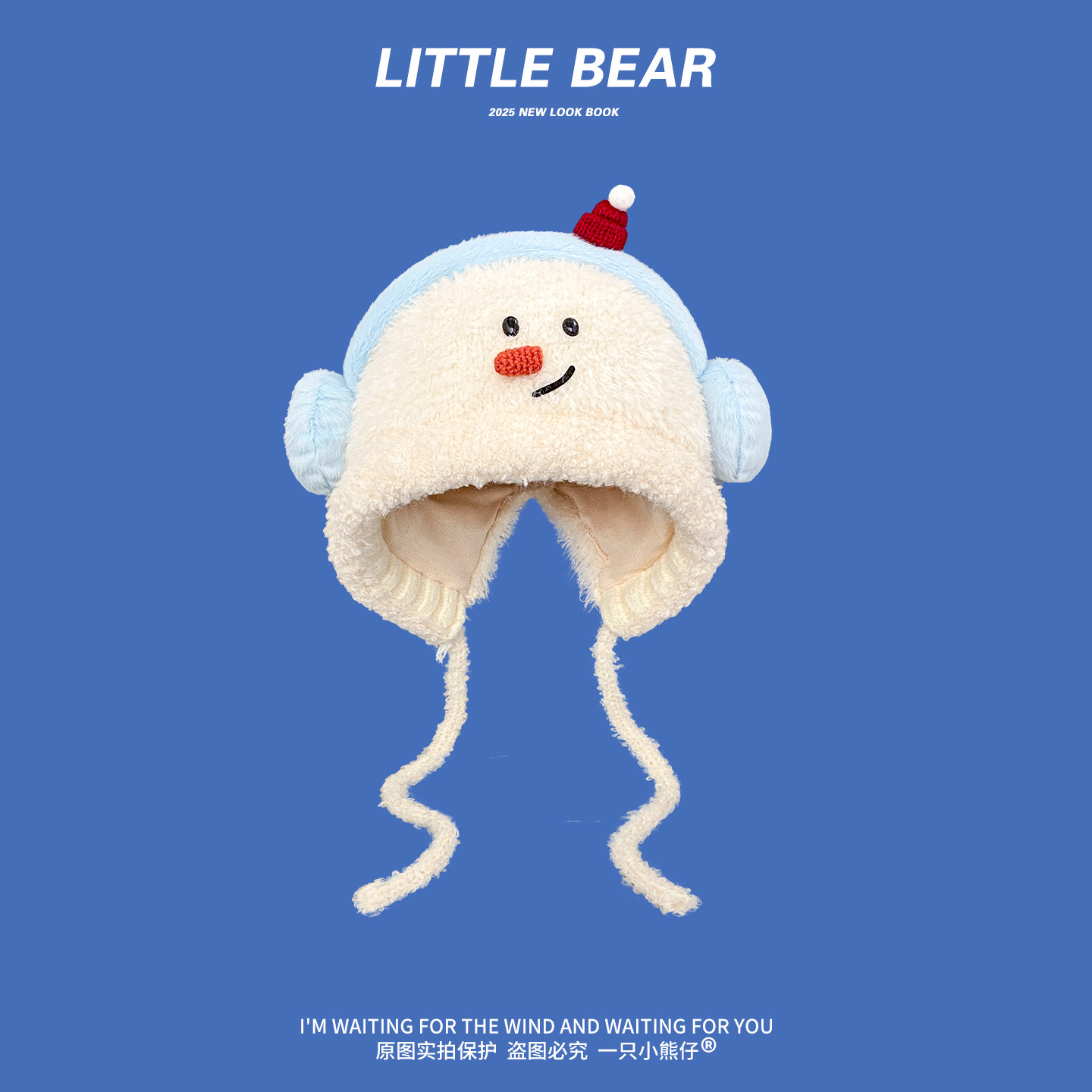 小清新蓝色系列针织毛绒帽
