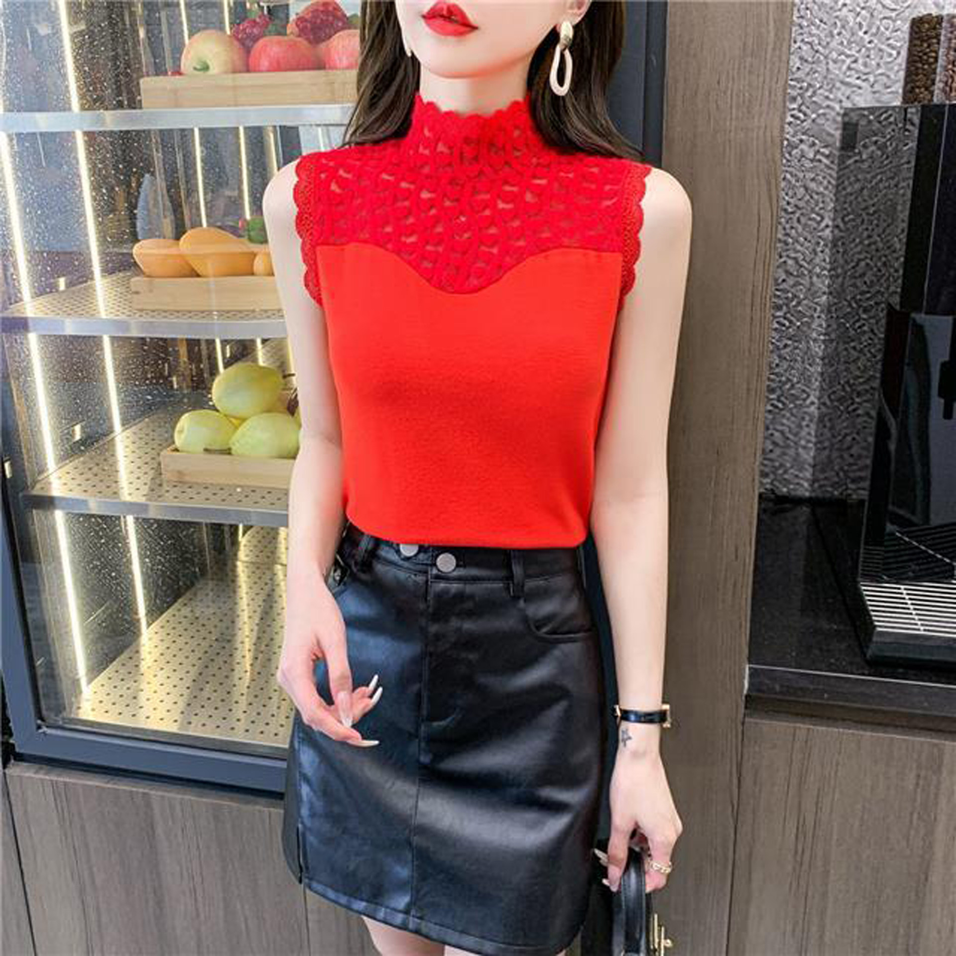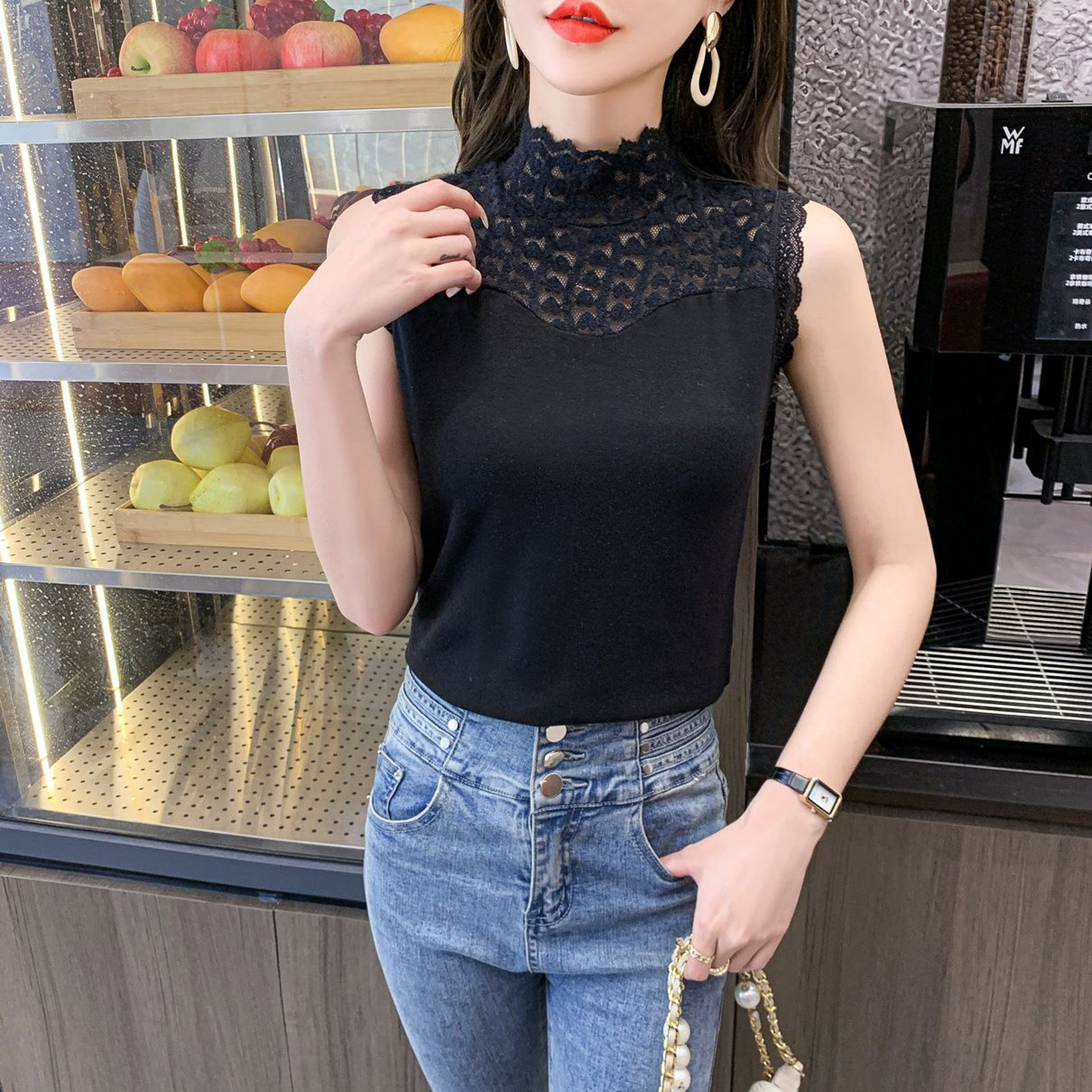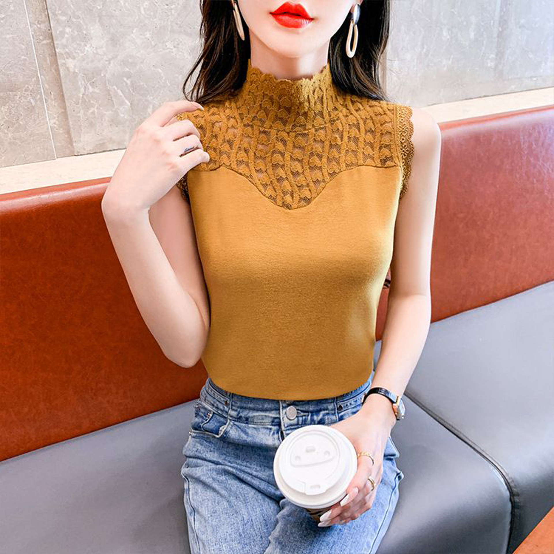 假领子女百搭假领秋冬配毛衣内搭高领蕾丝背心磨毛无袖网纱打底衫