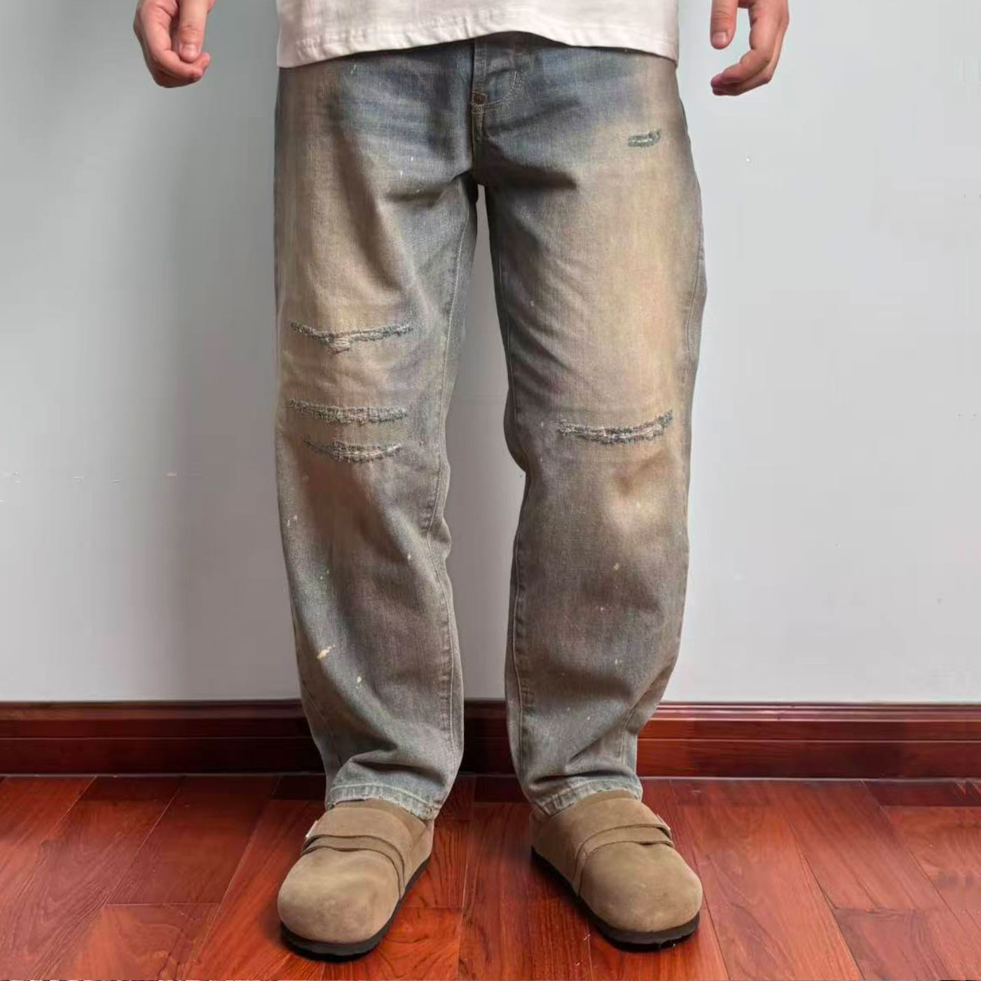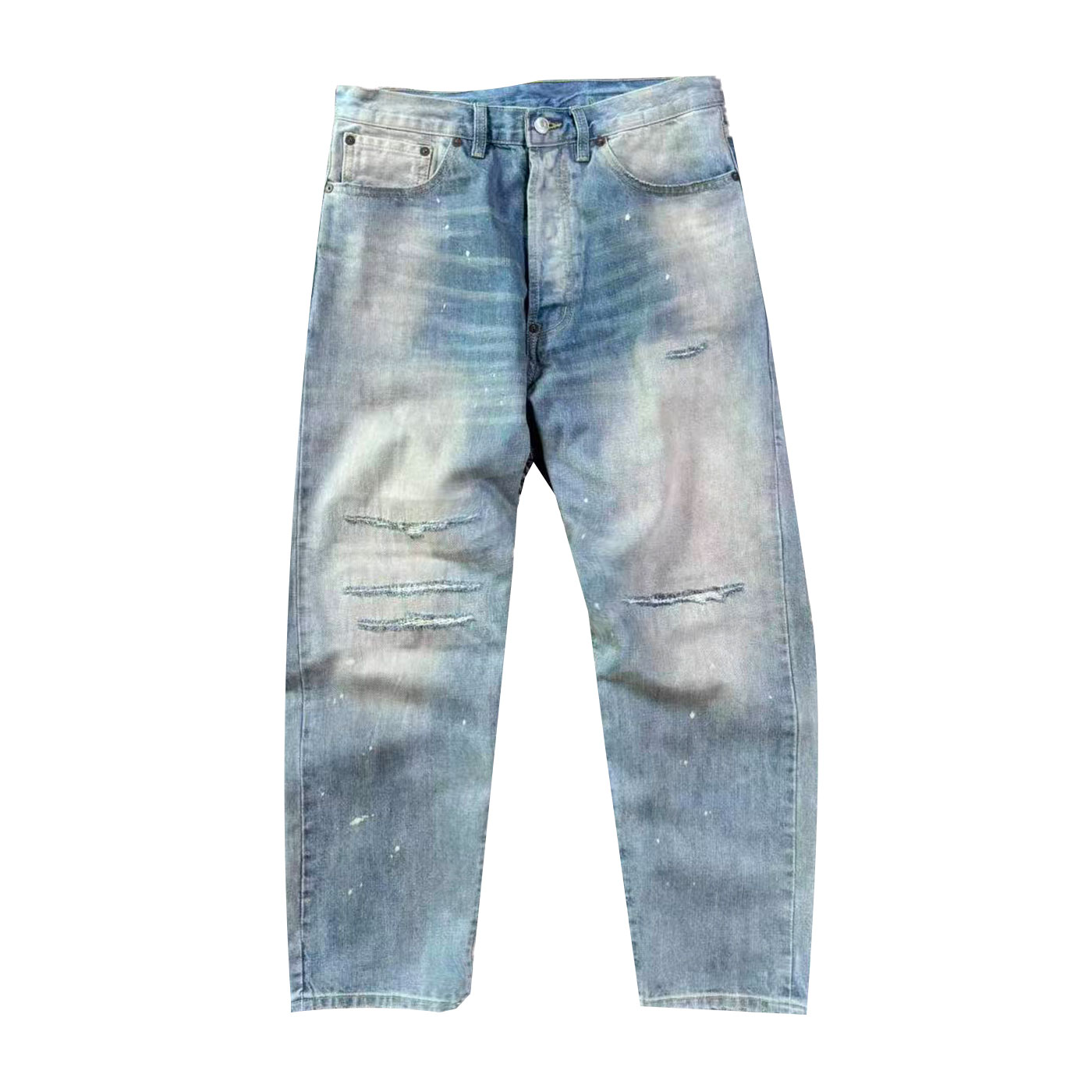 「牛王」A.PRESSE 日本冈山 改良501复古水洗破坏油漆赤耳牛仔裤