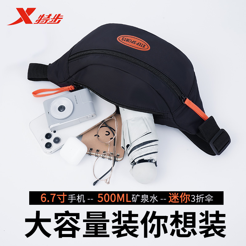 特步斜挎包男款大容量胸包2024新款多功能腰包简约轻便挎包女背包