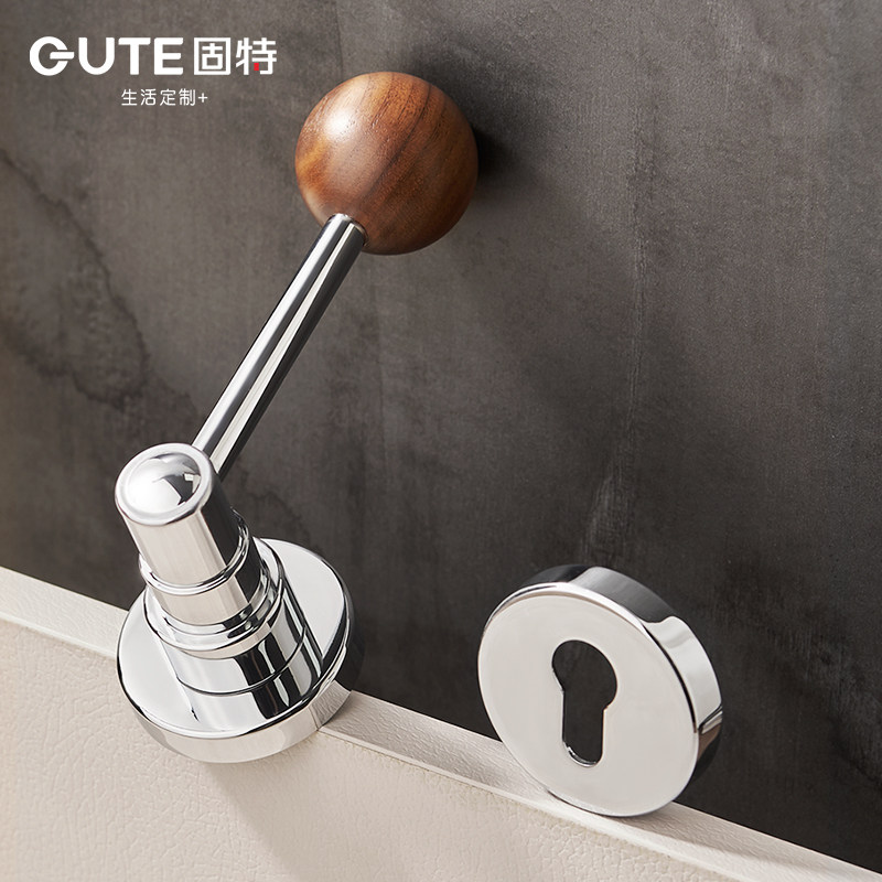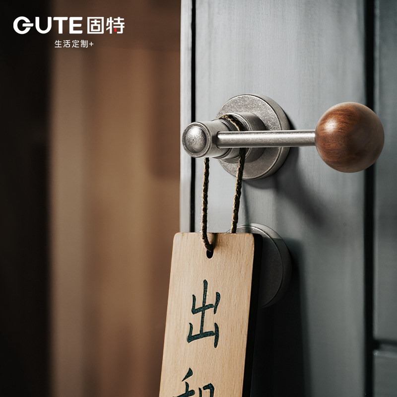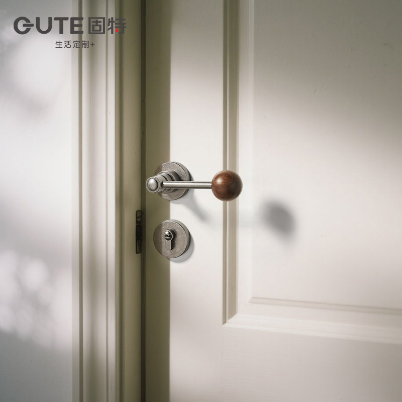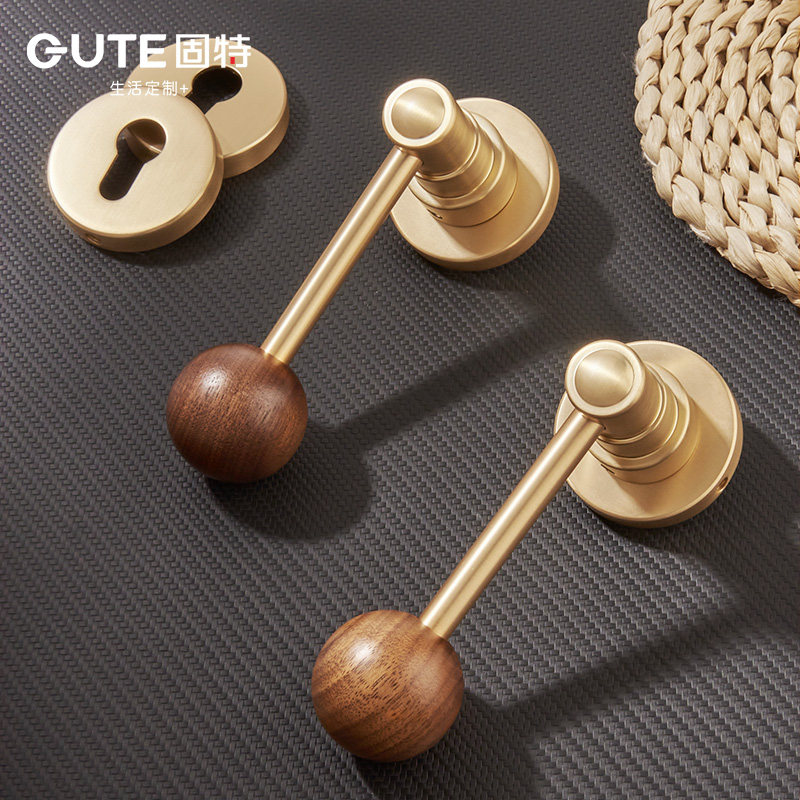 固特胡桃木门锁中古风复古室内房门木球门把手分体实木磁吸锁具