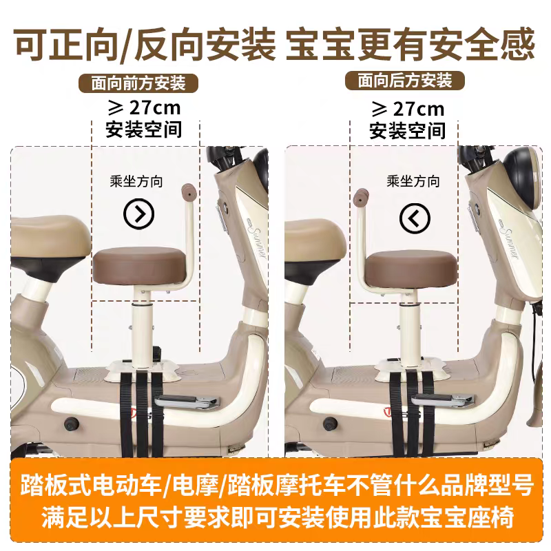 电动车儿童座椅前置带减震电瓶车踏板车通用小孩安全坐椅小凳子