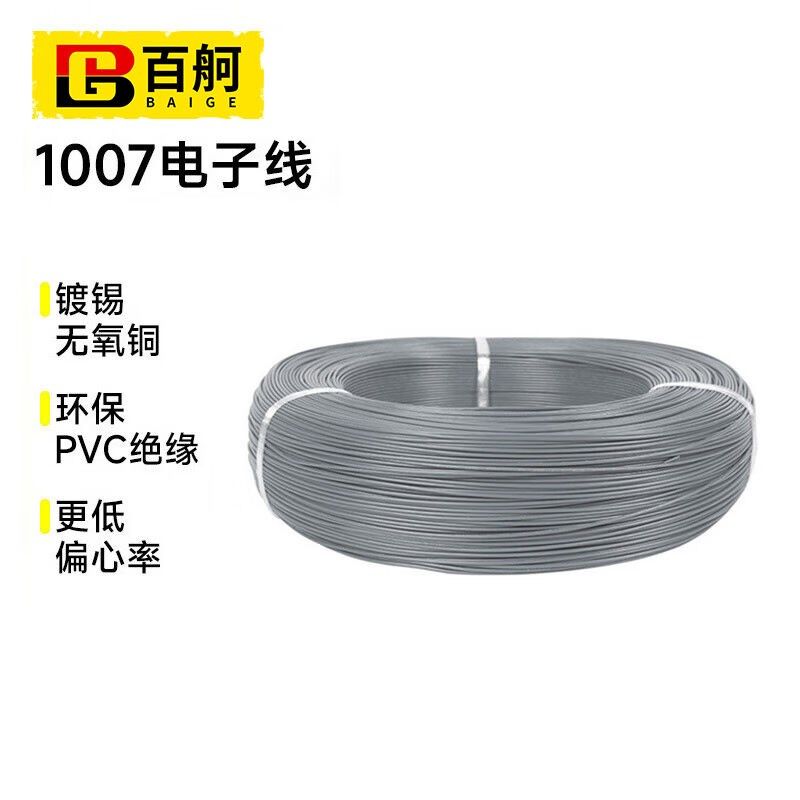 百舸1007电子线耐l高温环保电线PVC导线连接线26AWG灰色7/0.12TS