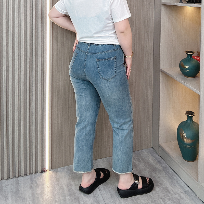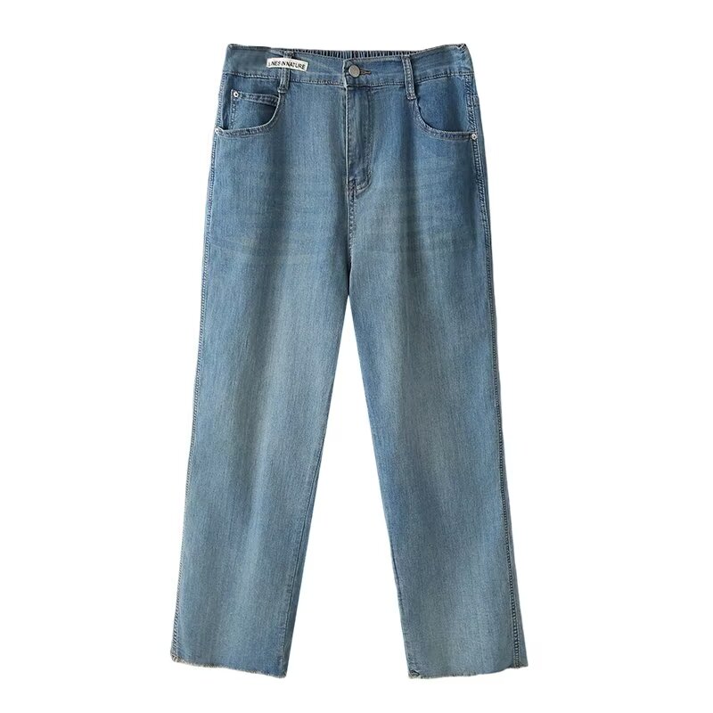 薄款毛边九分牛仔裤女夏2025新款大码女装宽松显瘦直筒高腰烟管裤