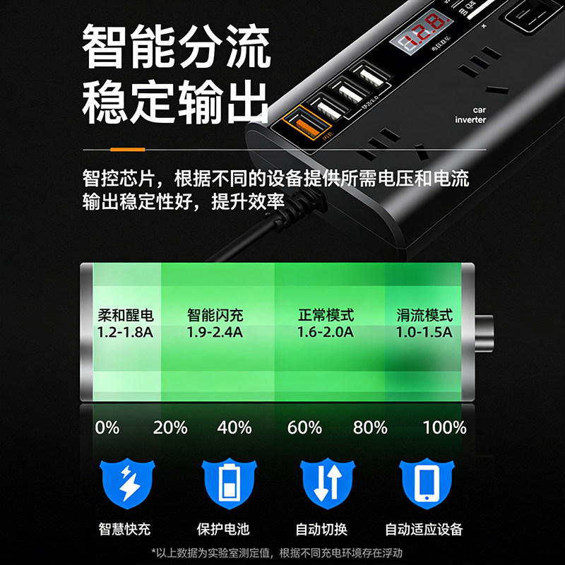 车载逆变器12V24V通用转220V货车电源插座汽车智能充电逆变转换器