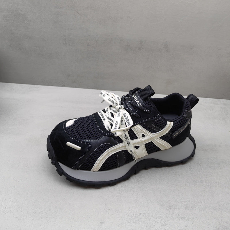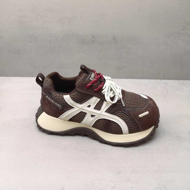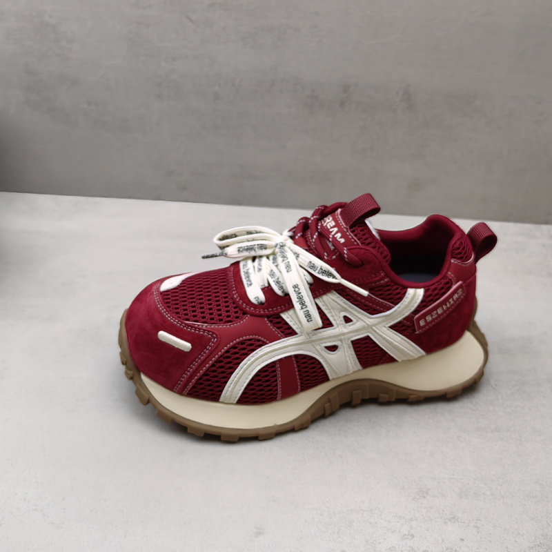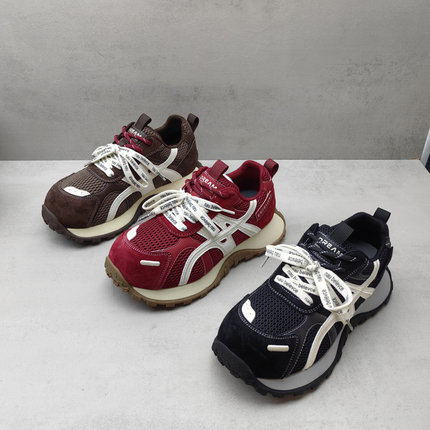 2025秋季新款真皮网面透气休闲系带舒适厚底增高老爹跑步运动女鞋